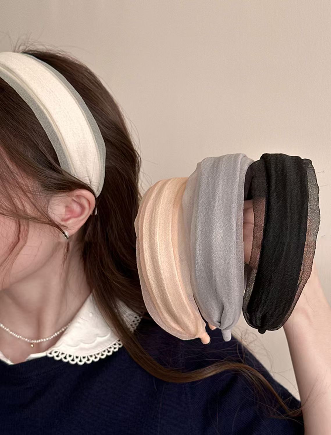 绢纱发箍女高级感遮白发头箍黑色宽边压发卡2025新款发捆发窟头饰