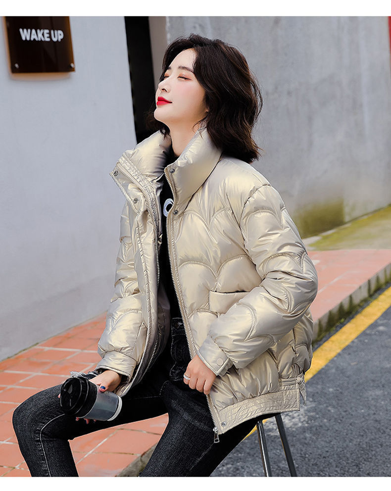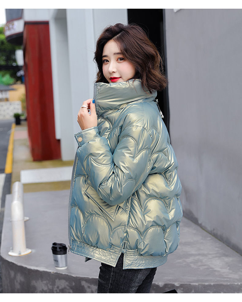 2025年冬新款韩版宽松棉衣小棉袄外套反季免洗亮面羽绒棉服女短款