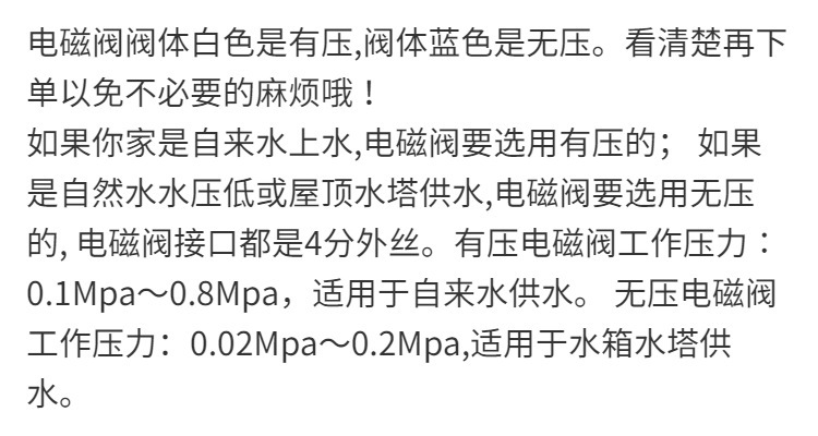 规格型号 DC12V有压塑帽全塑料进出水口,DC12V有压塑帽塑料进水口,DC12V有压塑帽电磁阀,DC12V无压塑帽电磁阀,DC12V有压铜帽电磁阀,DC12V无压铜帽电磁阀,DC12V零压铜帽电磁阀,DC12V有压(电镀)铜帽电磁阀