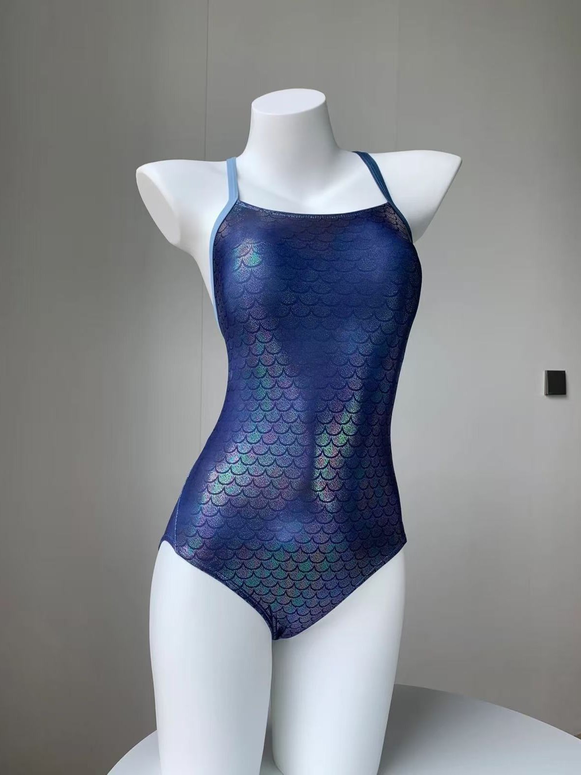 微胖大码泳衣女游泳馆专用高级感2025新款泳装连体竞速泳衣流光鳞
