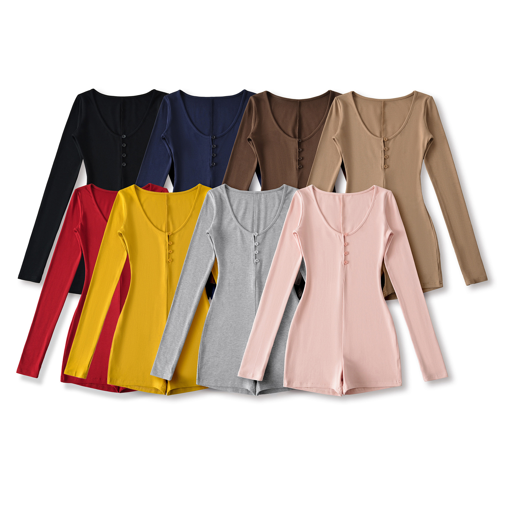 跨境女装批发 欧美风长袖圆领纽扣连体衣2025秋季新款针织上衣