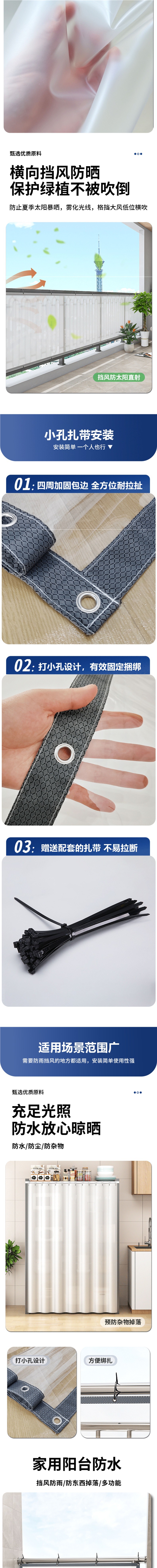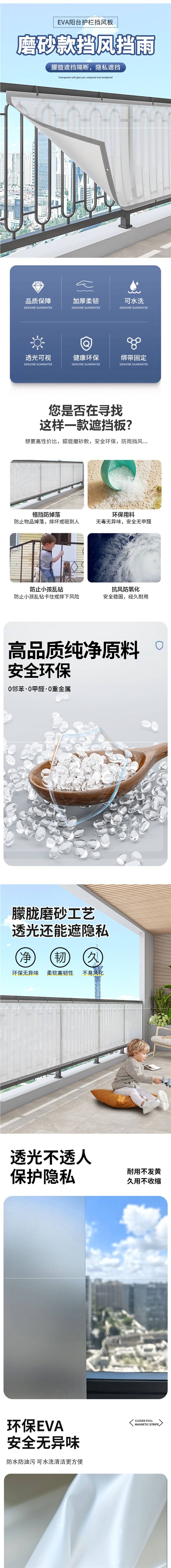 阳台防雨防晒挡板磨砂隐私遮挡户外栏杆遮挡风帘楼梯扶手围栏防坠