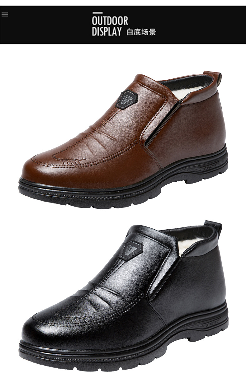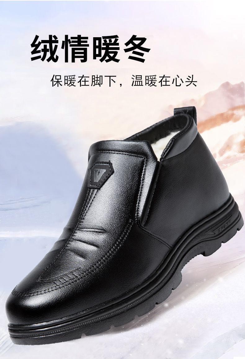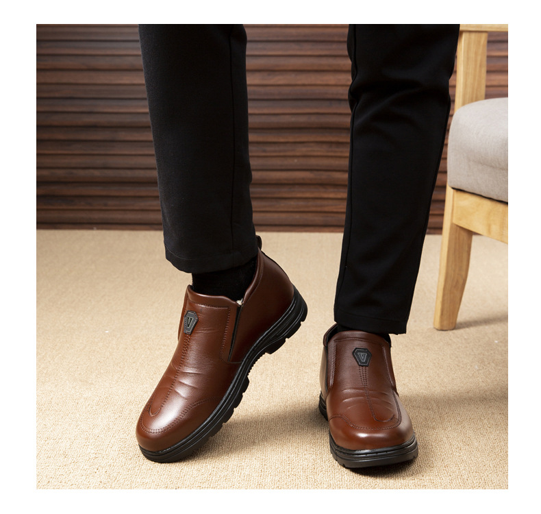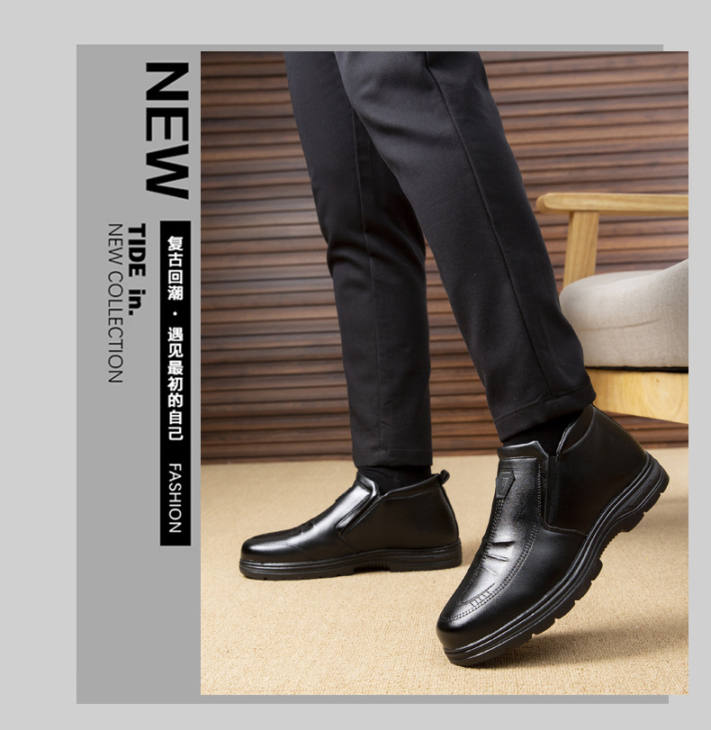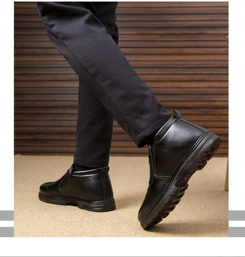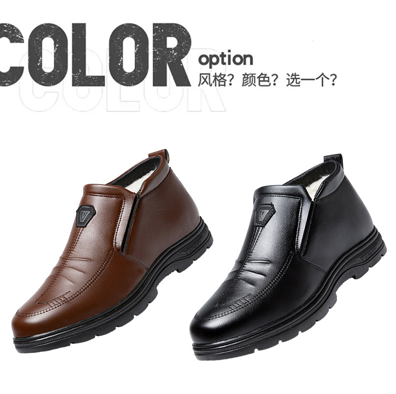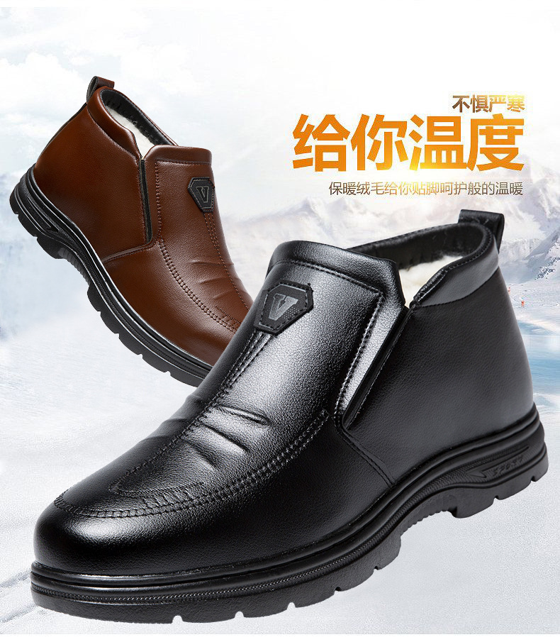 男性用ビジネス綿靴ゴム底綿靴男性用革面綿靴中高年研磨綿靴マーティンブーツ