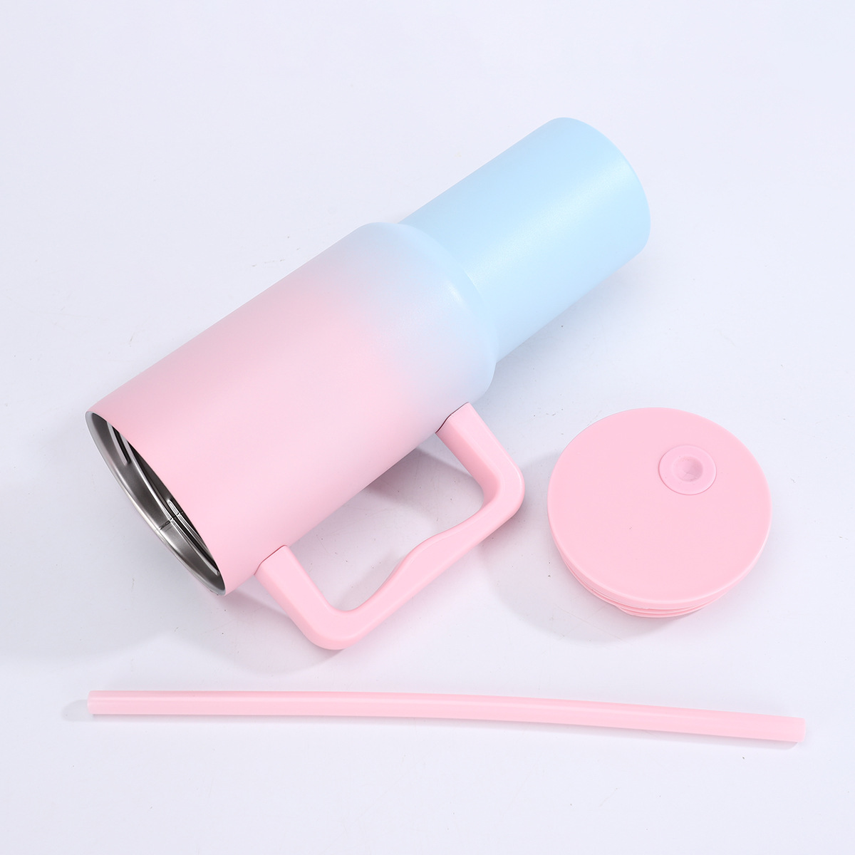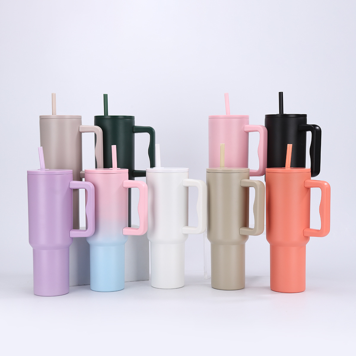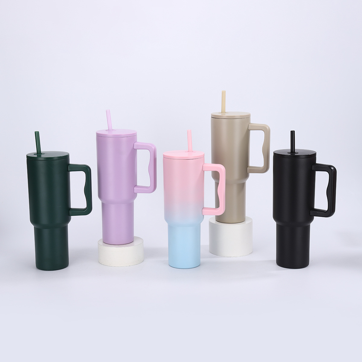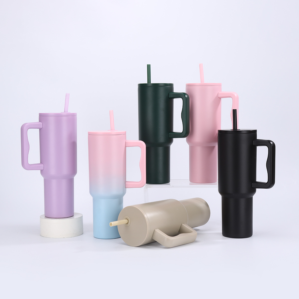 跨境304不锈钢三代40oz汽车杯便携手柄保温杯渐变色吸管冰霸杯