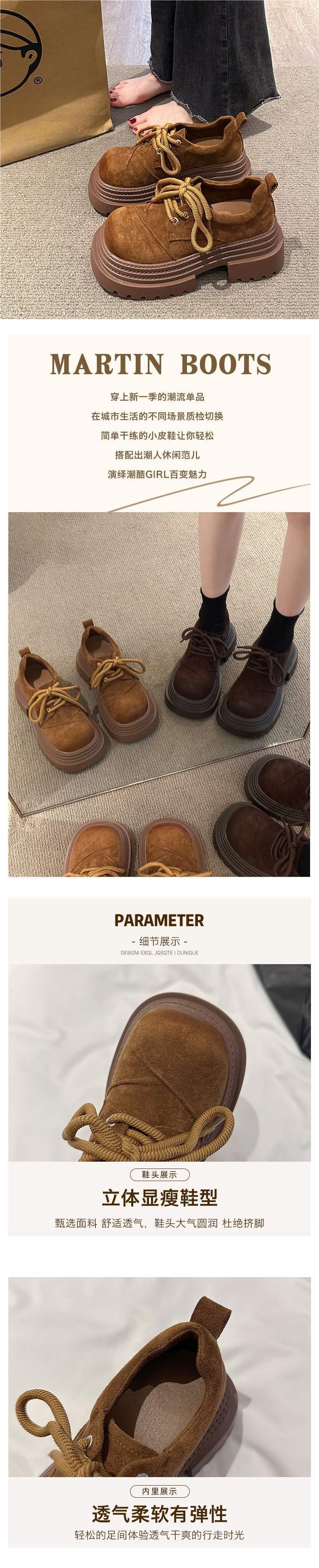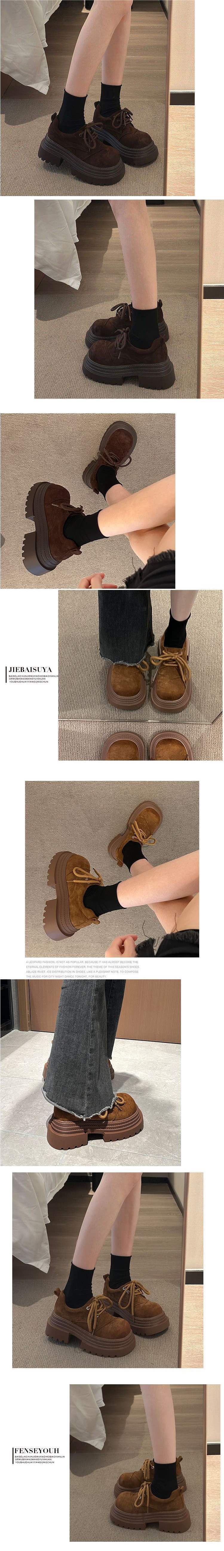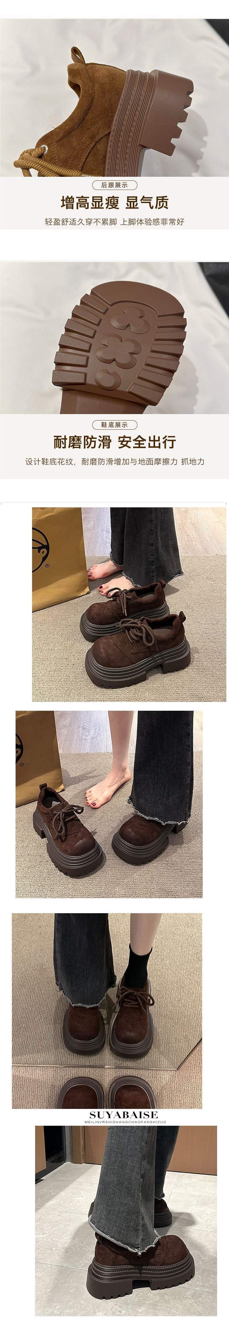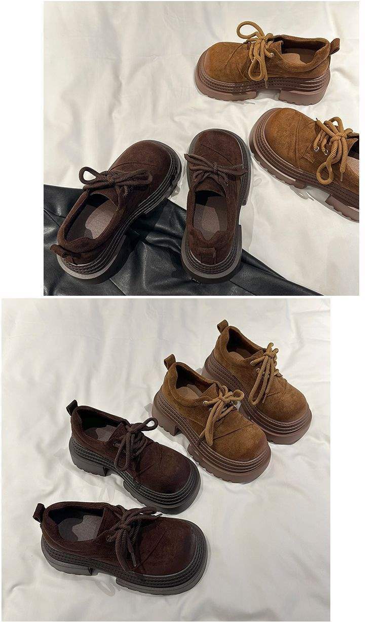 欧货系带厚底三层皮鞋小个子2025四季大头擦两色乐福鞋厚底女鞋