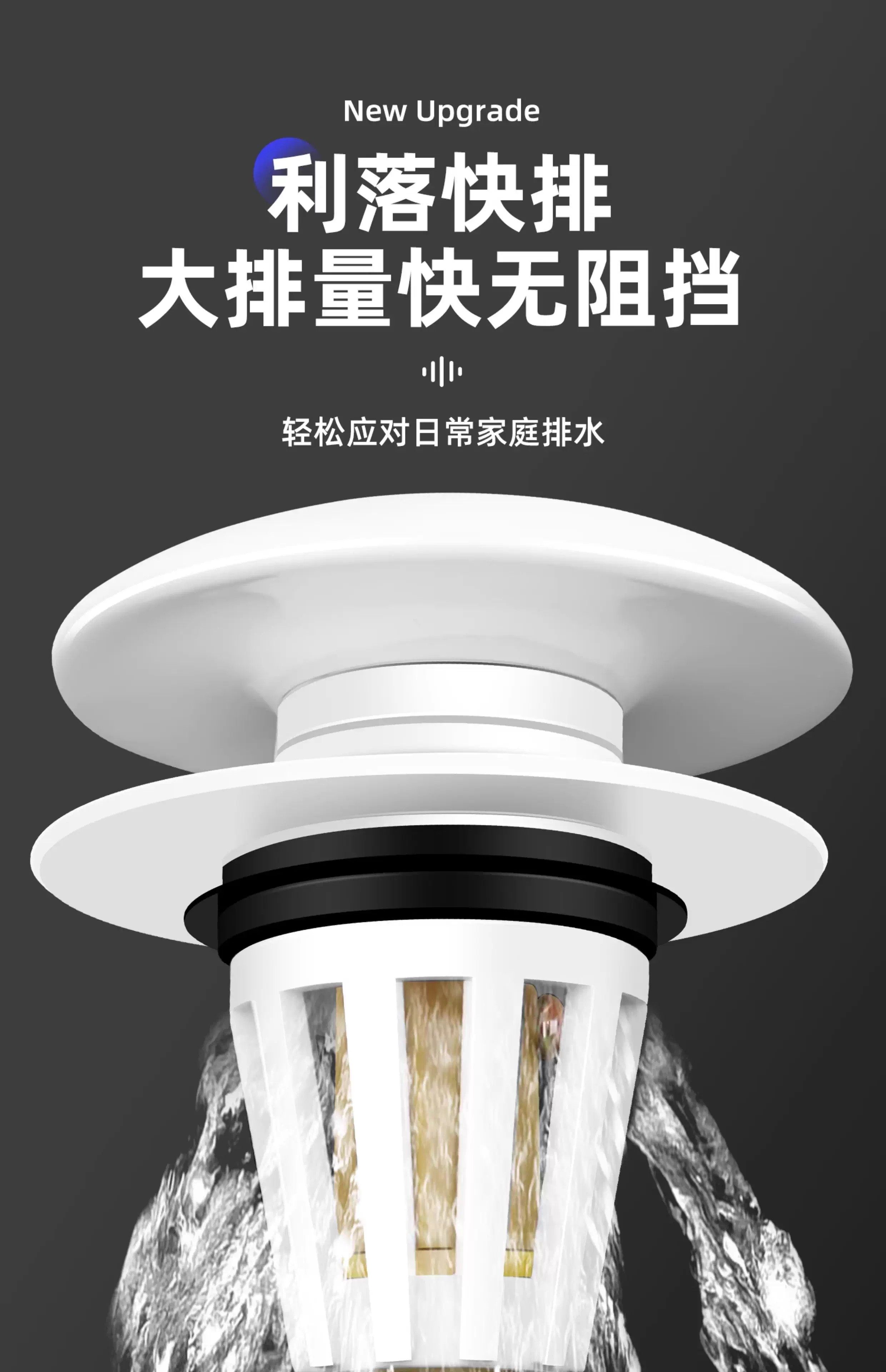 01 面盆洗手盆通用弹跳芯304不锈钢防臭堵孔塞洗脸盆按压式下水器过