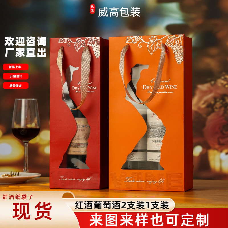 スポット赤ワインギフトボックスダブルハイエンドハンドバッグワイン包装窓中空赤ワイン包装箱卸売