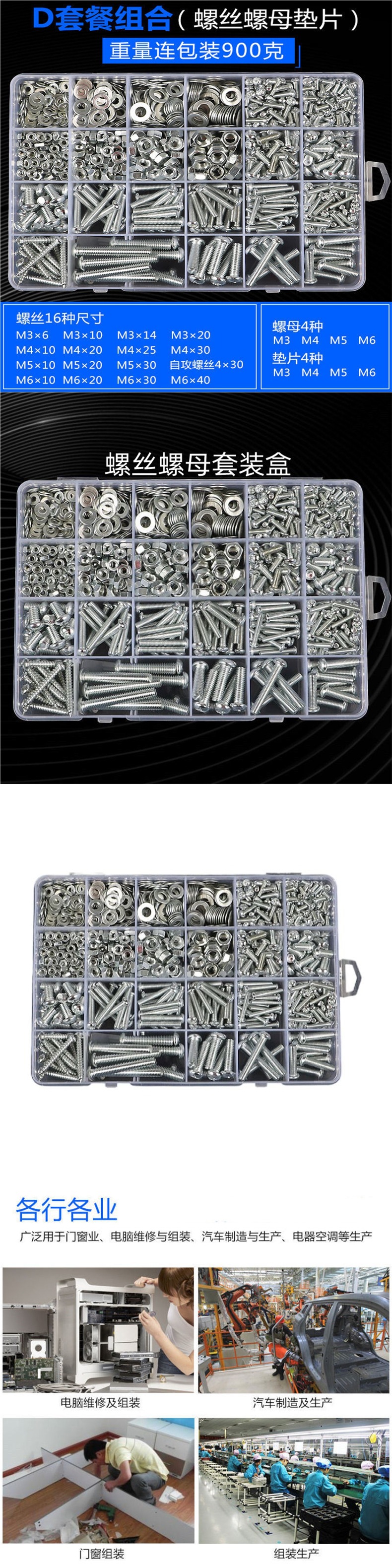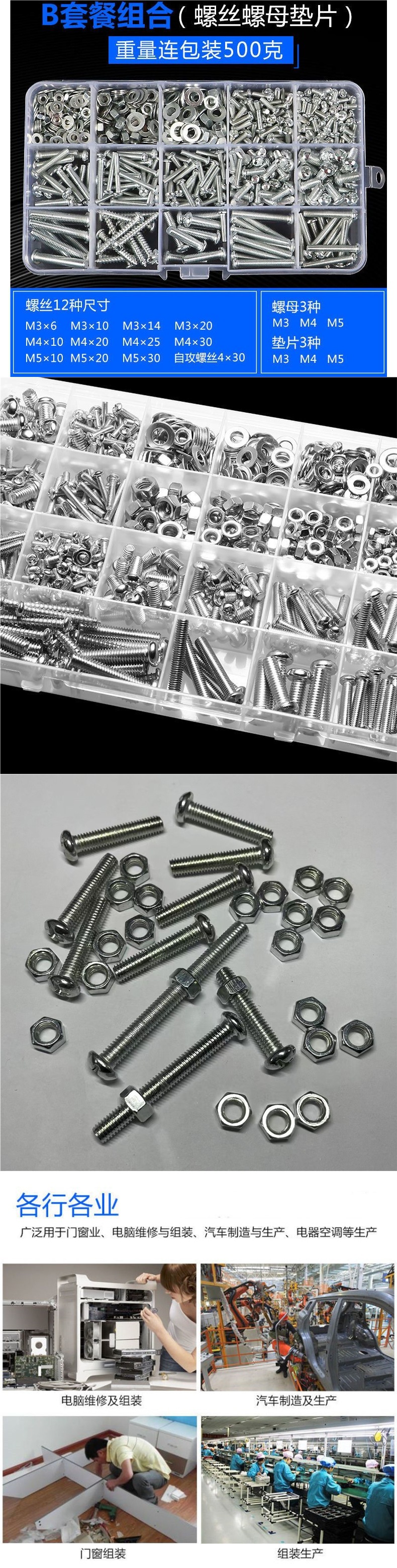 家用螺丝螺母套装圆头十字垫片螺丝钉螺栓螺丝帽全套自攻