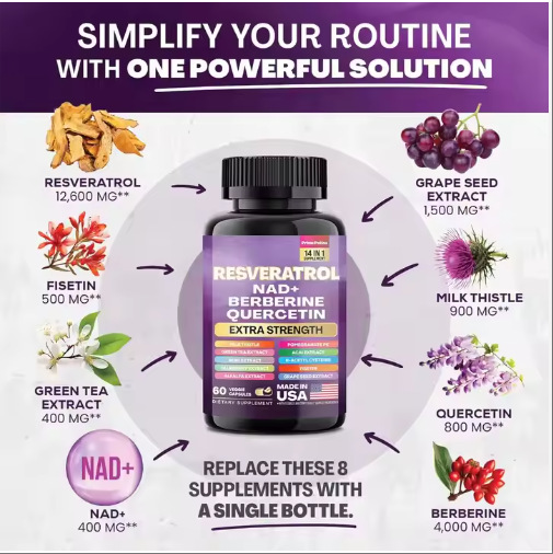 NAD + ベルベリン ケルセチンを含む白スベリル カプセル 14 in 1 ハーブ サプリメント 健康的な老化