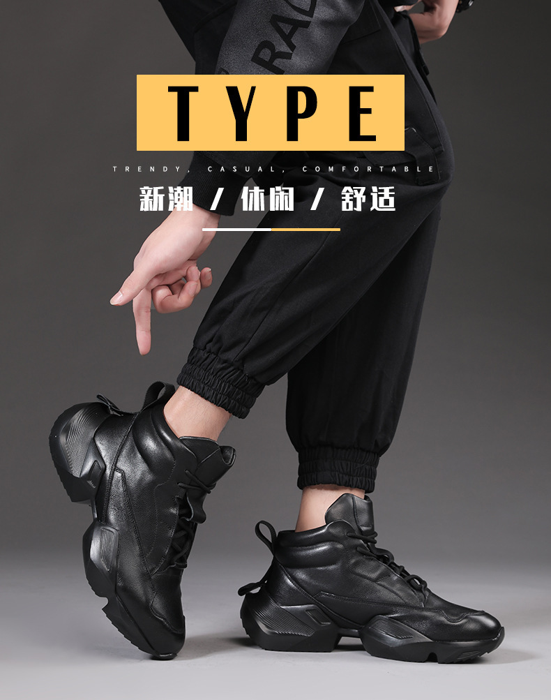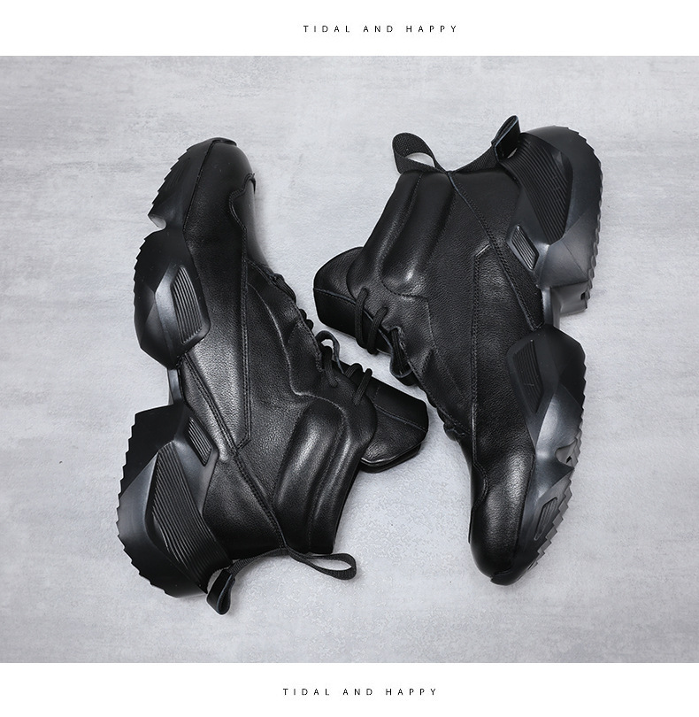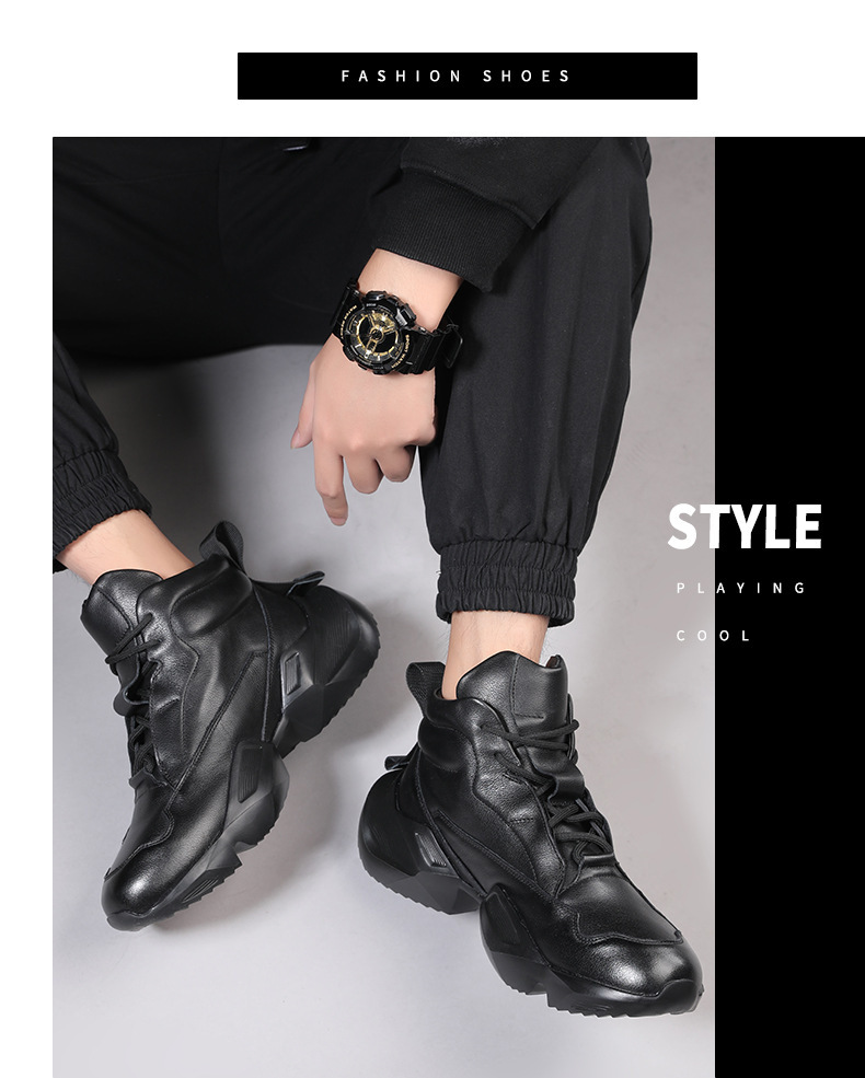 欧洲站秋冬季马丁靴男士真皮高帮短靴皮靴个性厚底头层牛皮靴子男
