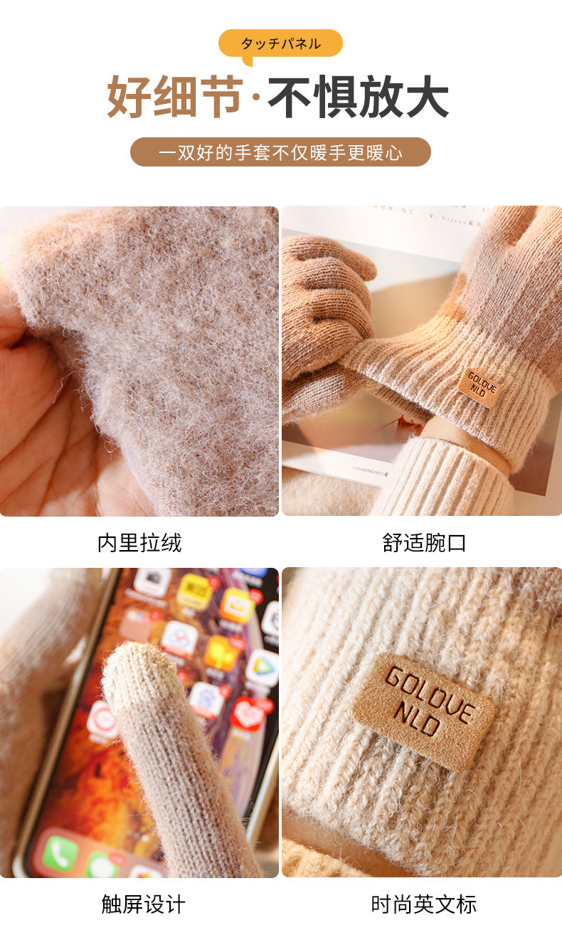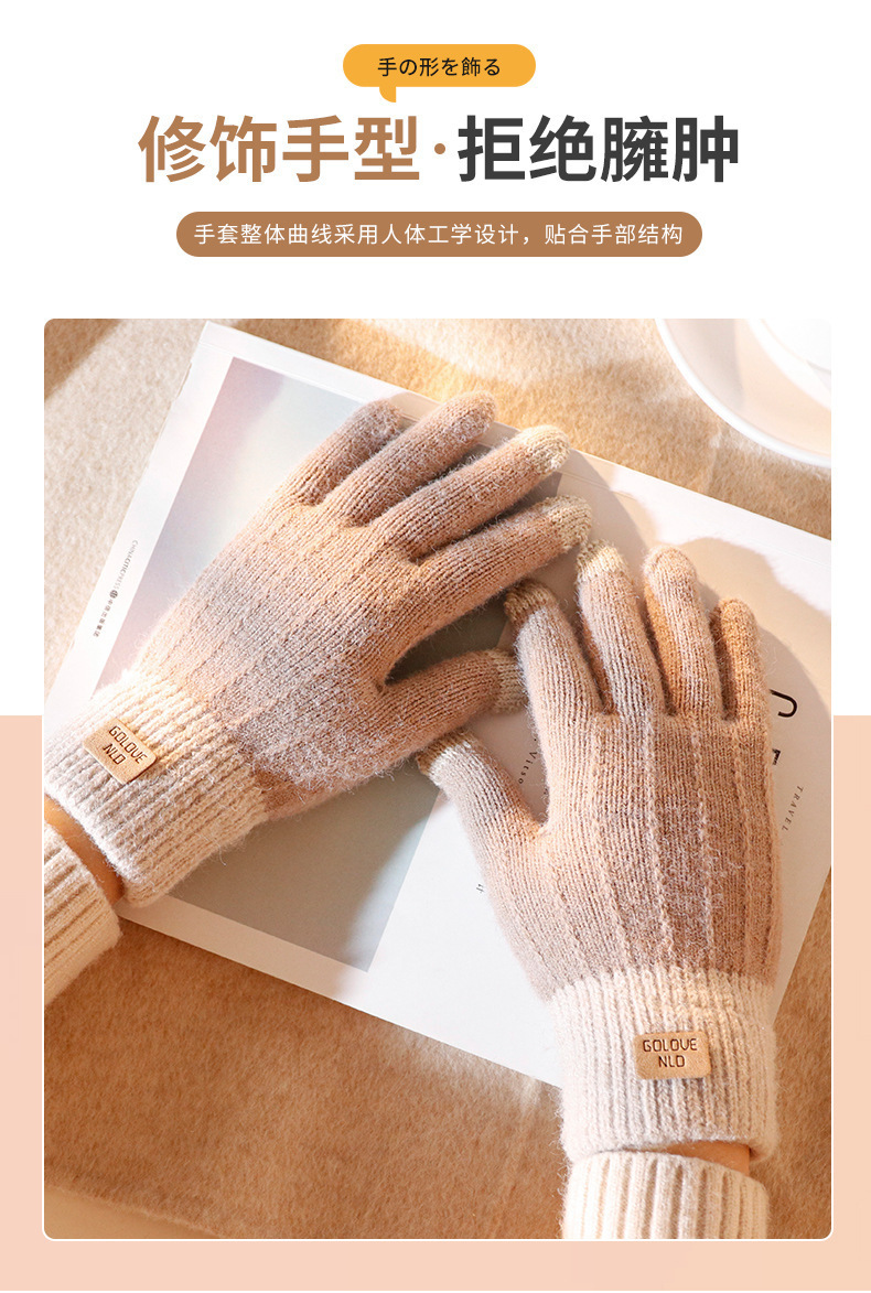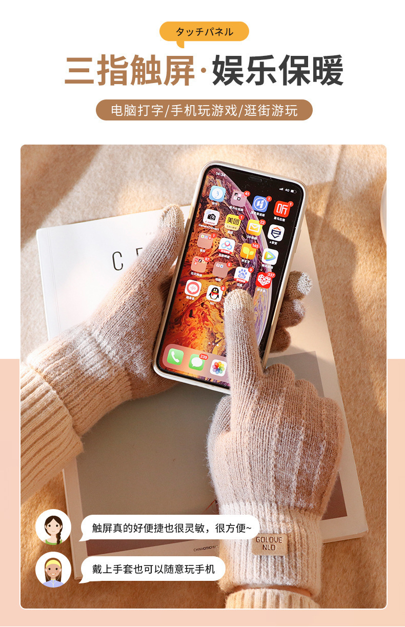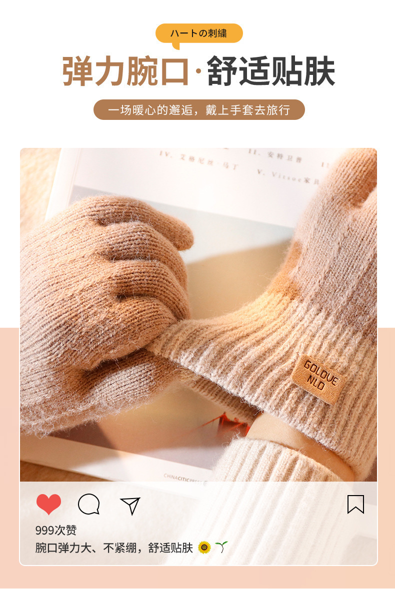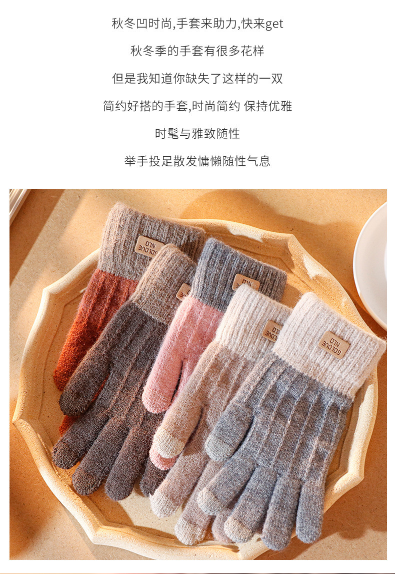 批发:仿羊驼绒保暖手套女冬季提花手套分指触屏手套跨境简约手套