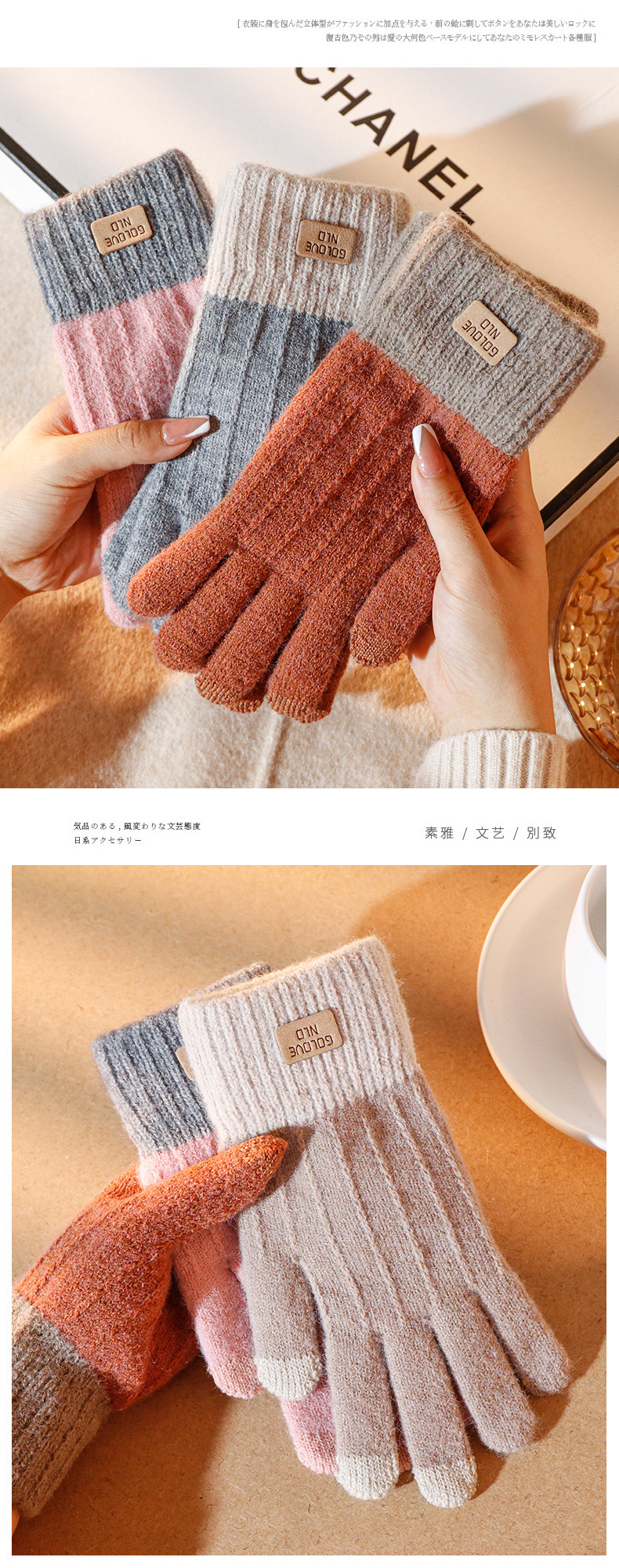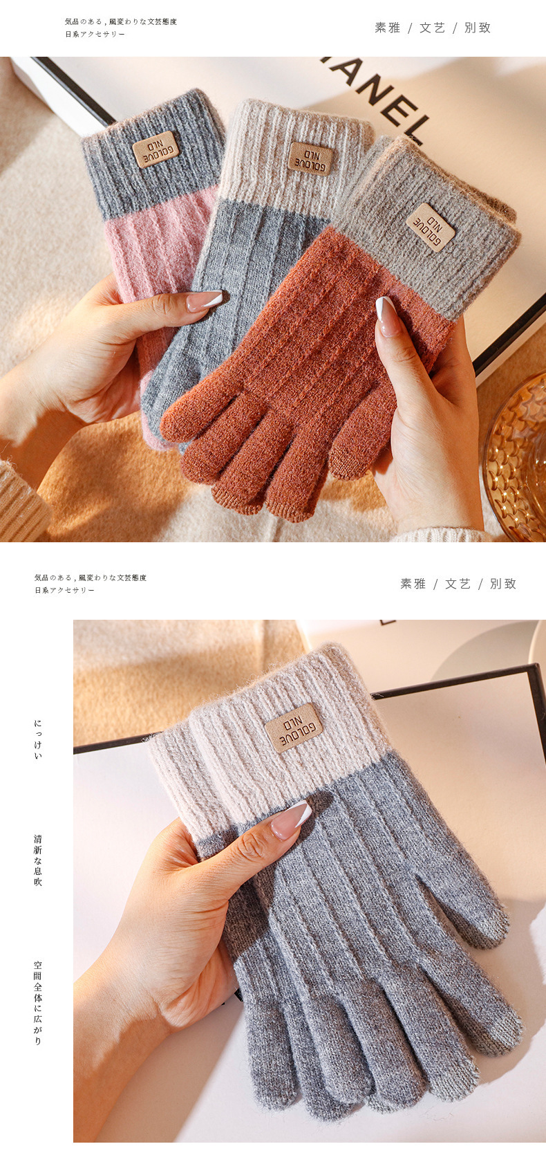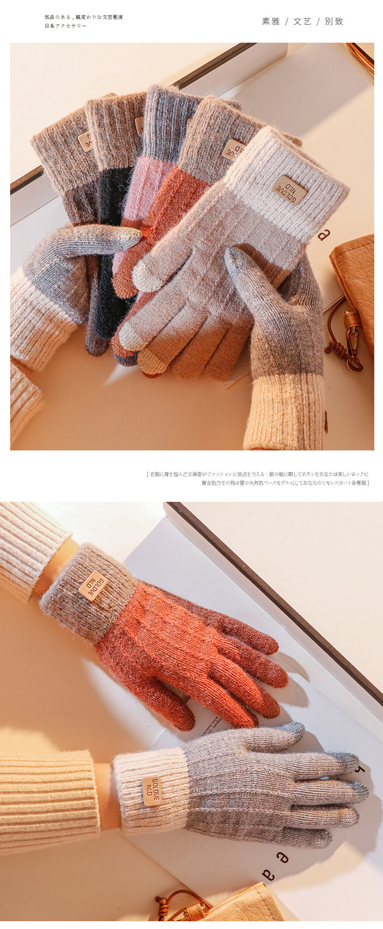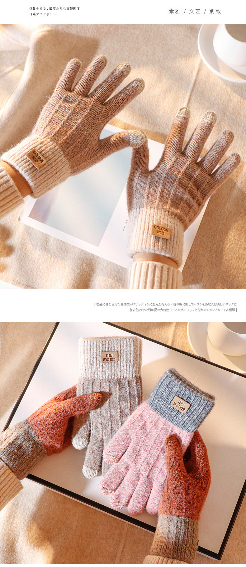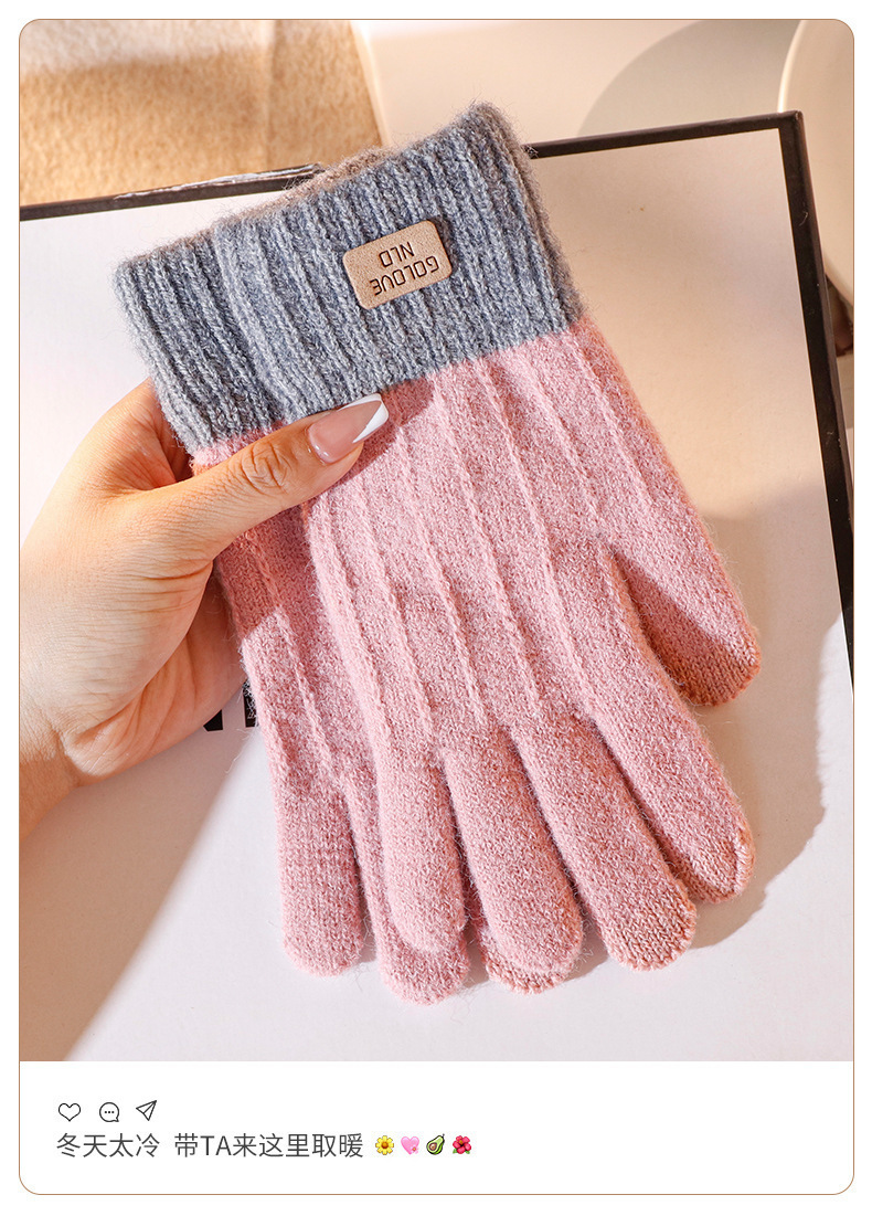 批发:仿羊驼绒保暖手套女冬季提花手套分指触屏手套跨境简约手套