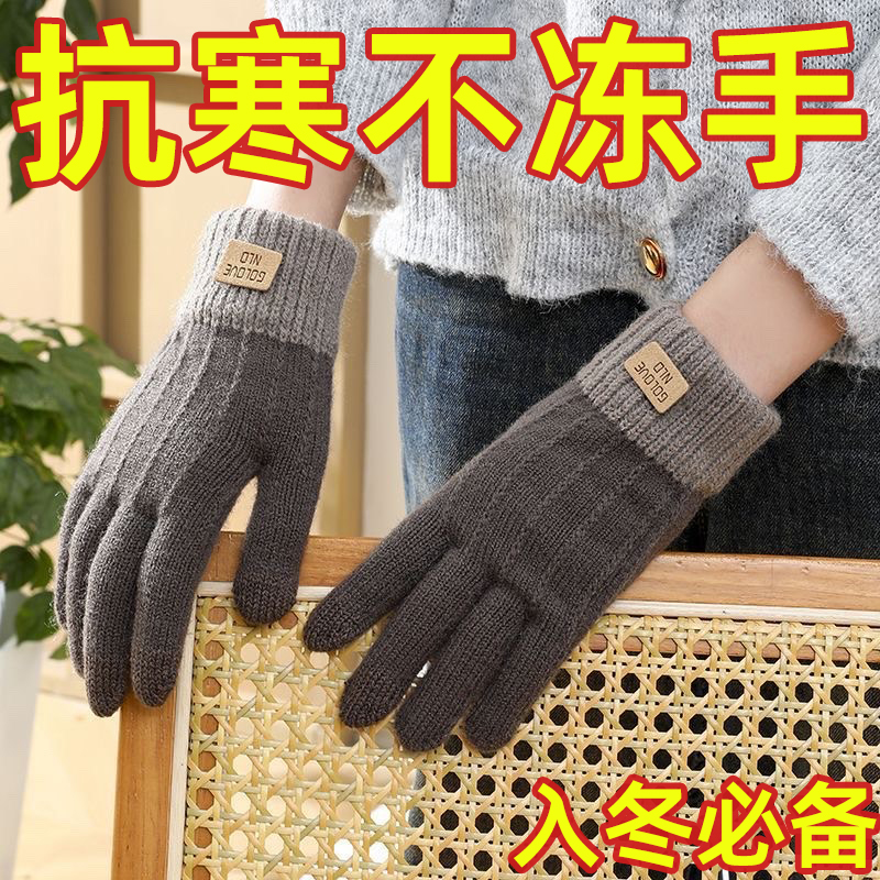针织触屏手套女士秋冬季保暖防滑加绒手套加厚韩版男女通毛线手套