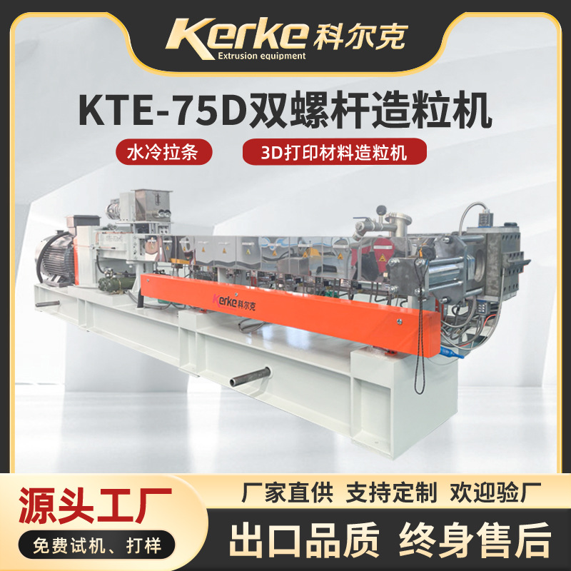 二軸スクリュー押出機KTE75D水冷プルバー充填3Dプリント造粒機ブレンド分解性造粒機