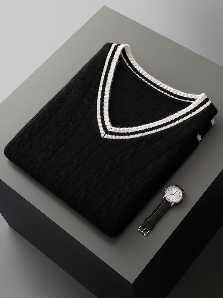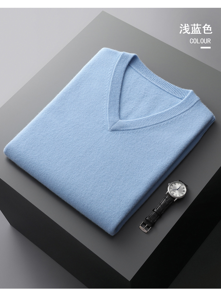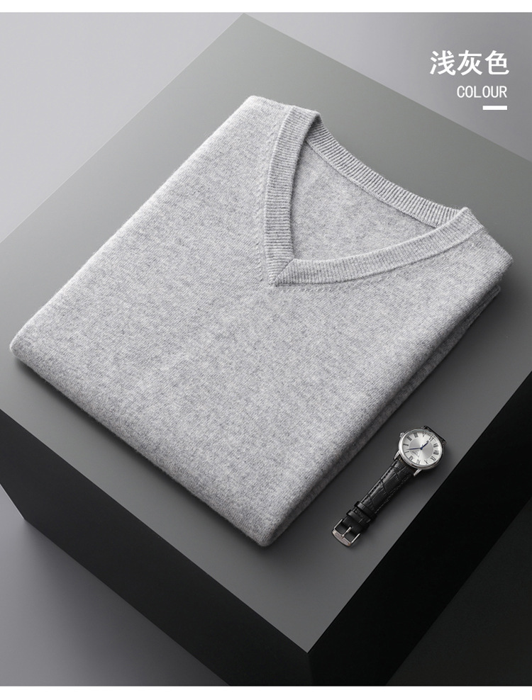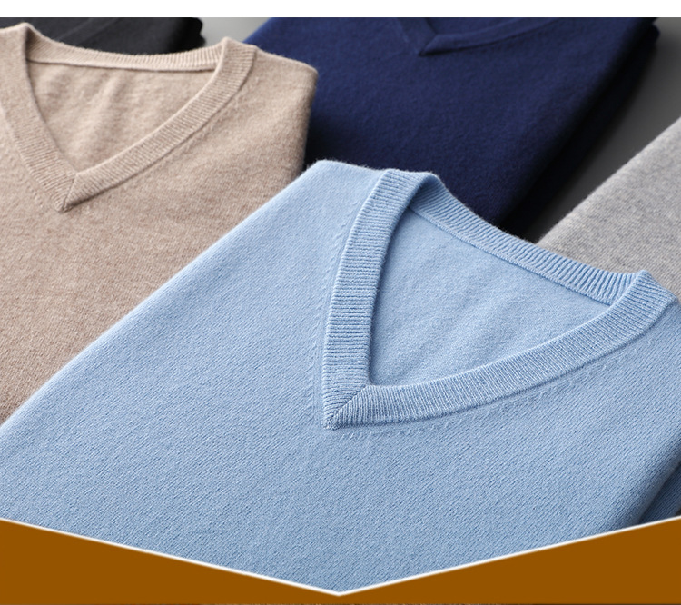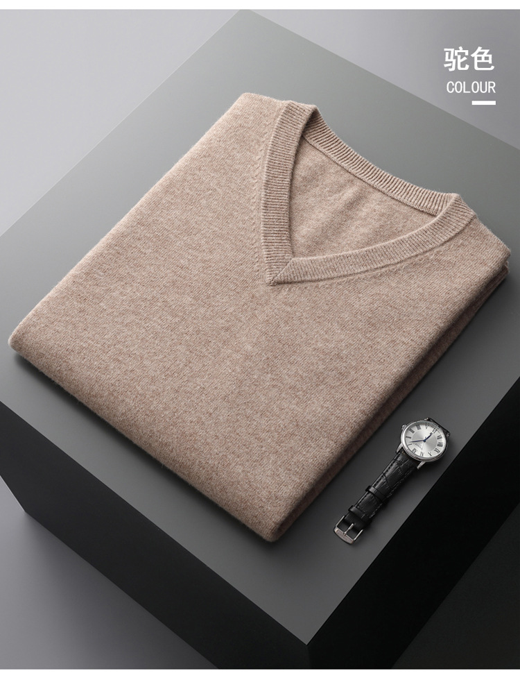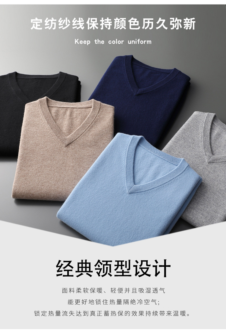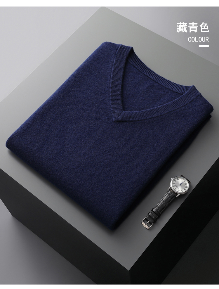 秋冬の新型男性vネック100% 純ウールセーター保温高級ソフトゆるいビジネスニットセーター