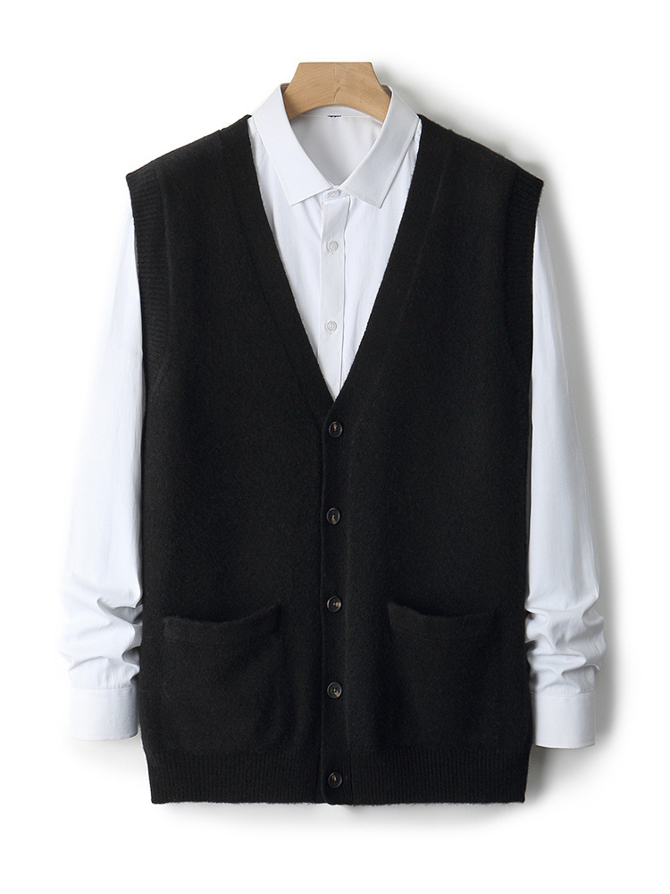 100%纯羊毛马甲男坎肩背心针织打底商务宽松V领无袖毛衣羊毛马甲