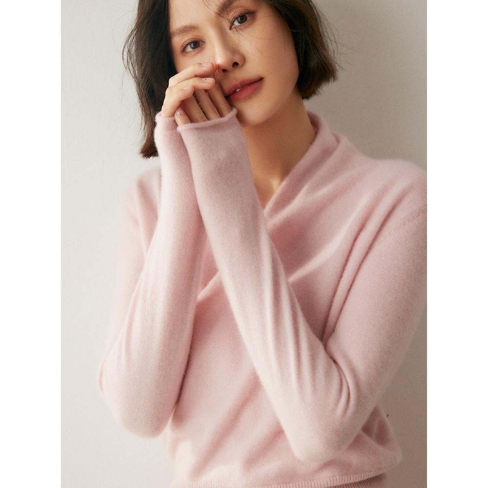 韩系交叉V领纯色女山羊绒针织打底衫气质显瘦宽松保暖毛衣内搭