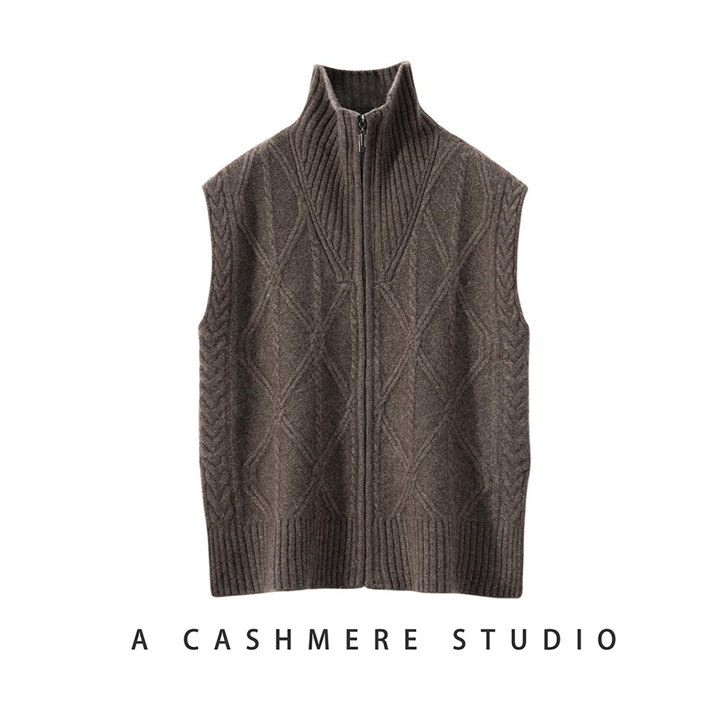五针高领纯色山羊绒马甲女针织拉链开衫宽松显瘦外搭坎肩秋冬新款