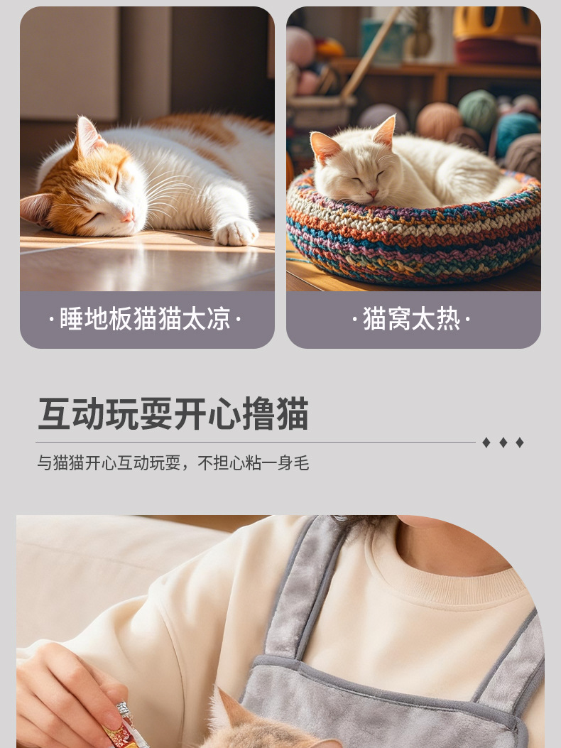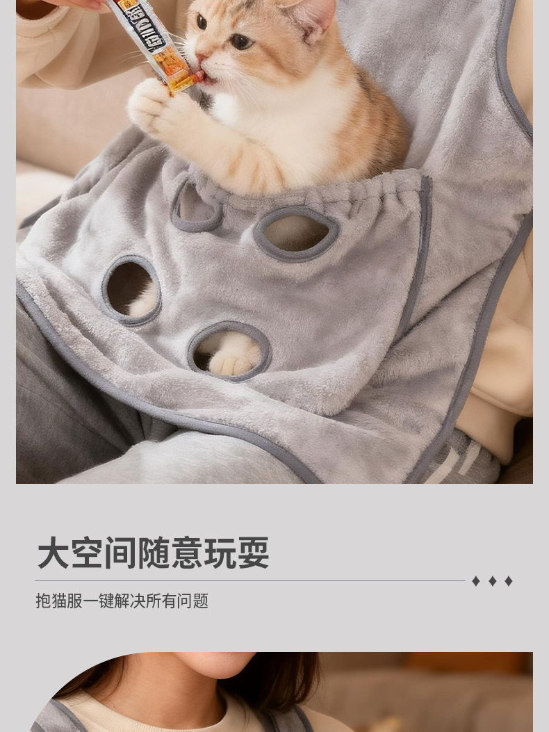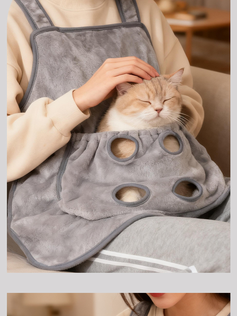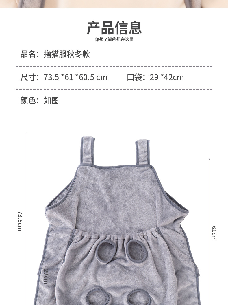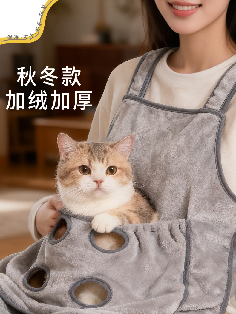 厚款撸猫衣服撸猫围裙不粘毛胸前宠物撸猫围兜可收缩有洞防抓防咬