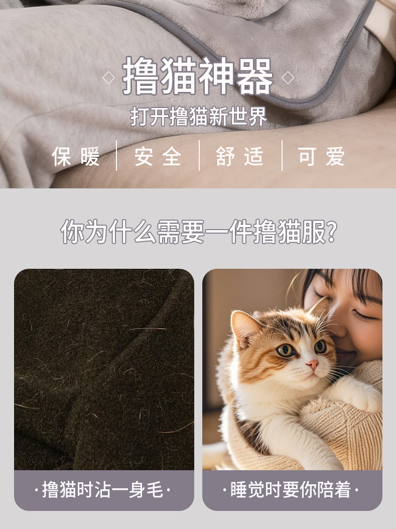 撸猫围裙防粘毛撸猫服抱猫神器防抓加厚北极绒超软猫围兜宠物衣服