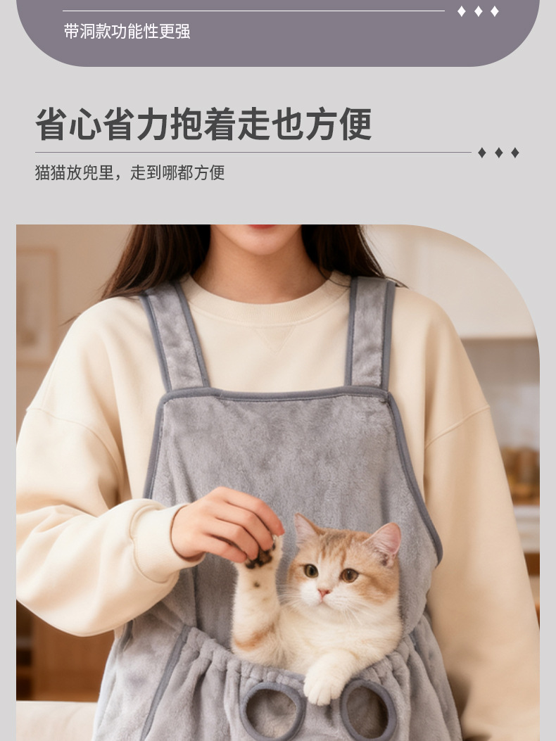 撸猫围裙抱猫服不粘毛胸前抱猫兜围裙装猫围兜防抓袋宠物衣服猫包