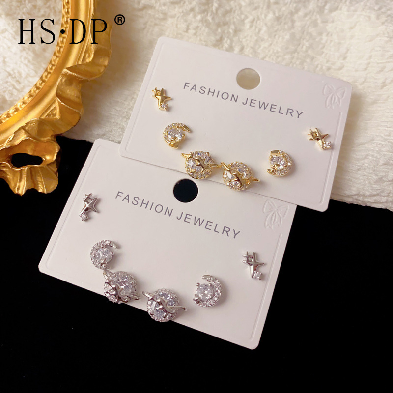 精致时尚日常通勤锆石芒星星球三件套耳钉女轻奢百搭超闪耳环批发