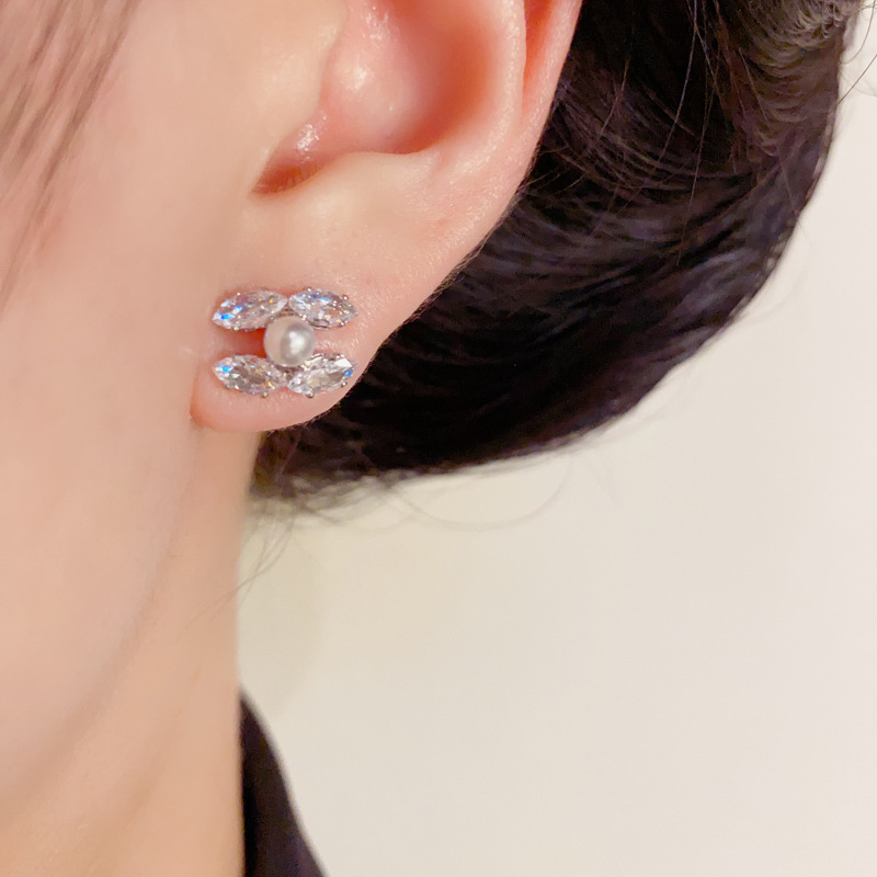 颜色 金色-锆石交叉珍珠三件套耳钉(加厚真金电镀),银色-锆石交叉珍珠三件套耳钉(加厚真金电镀)
