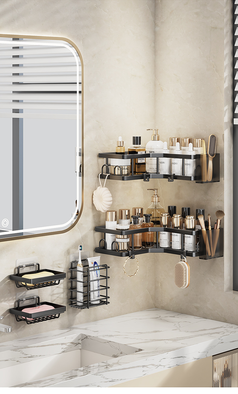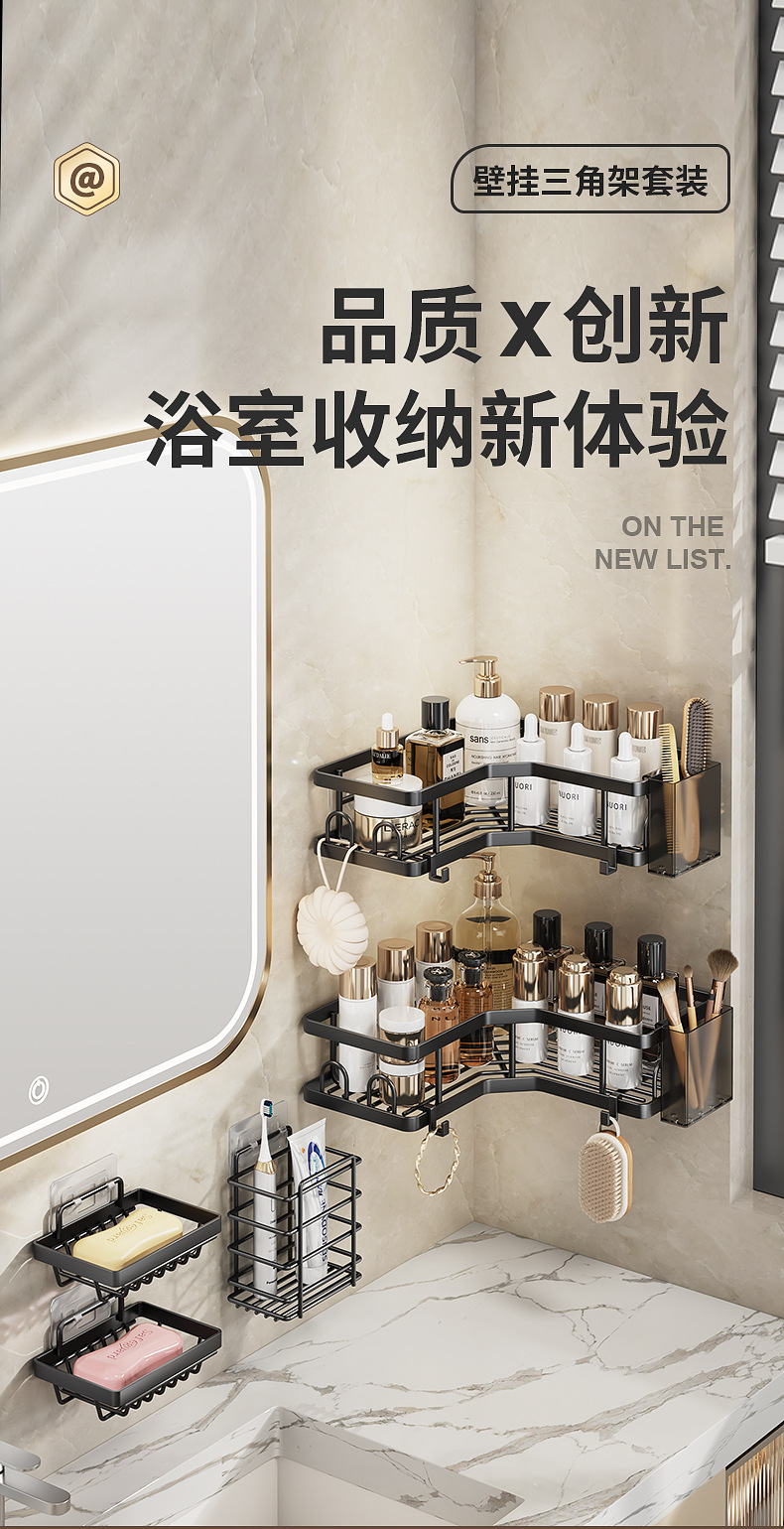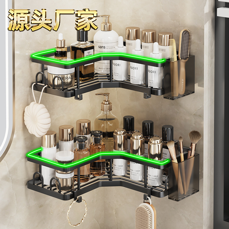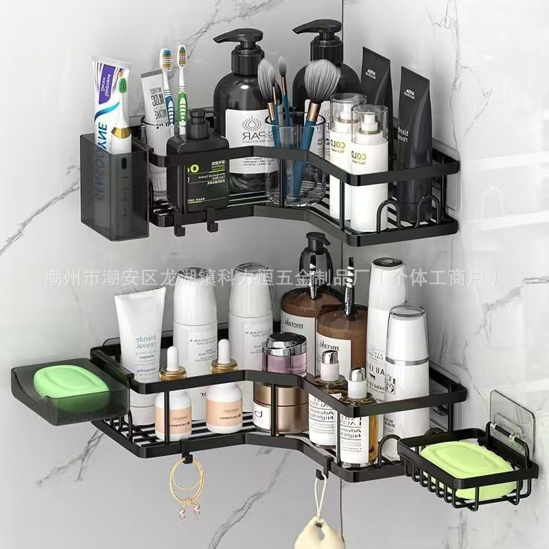 铁艺三角置物架浴室免打孔收纳架卫生间墙角壁挂铁艺整理架子跨境