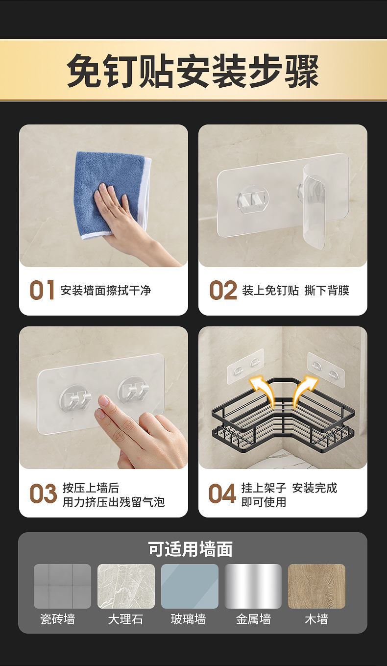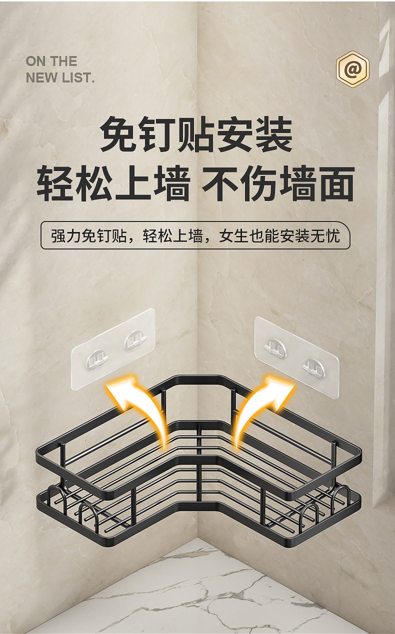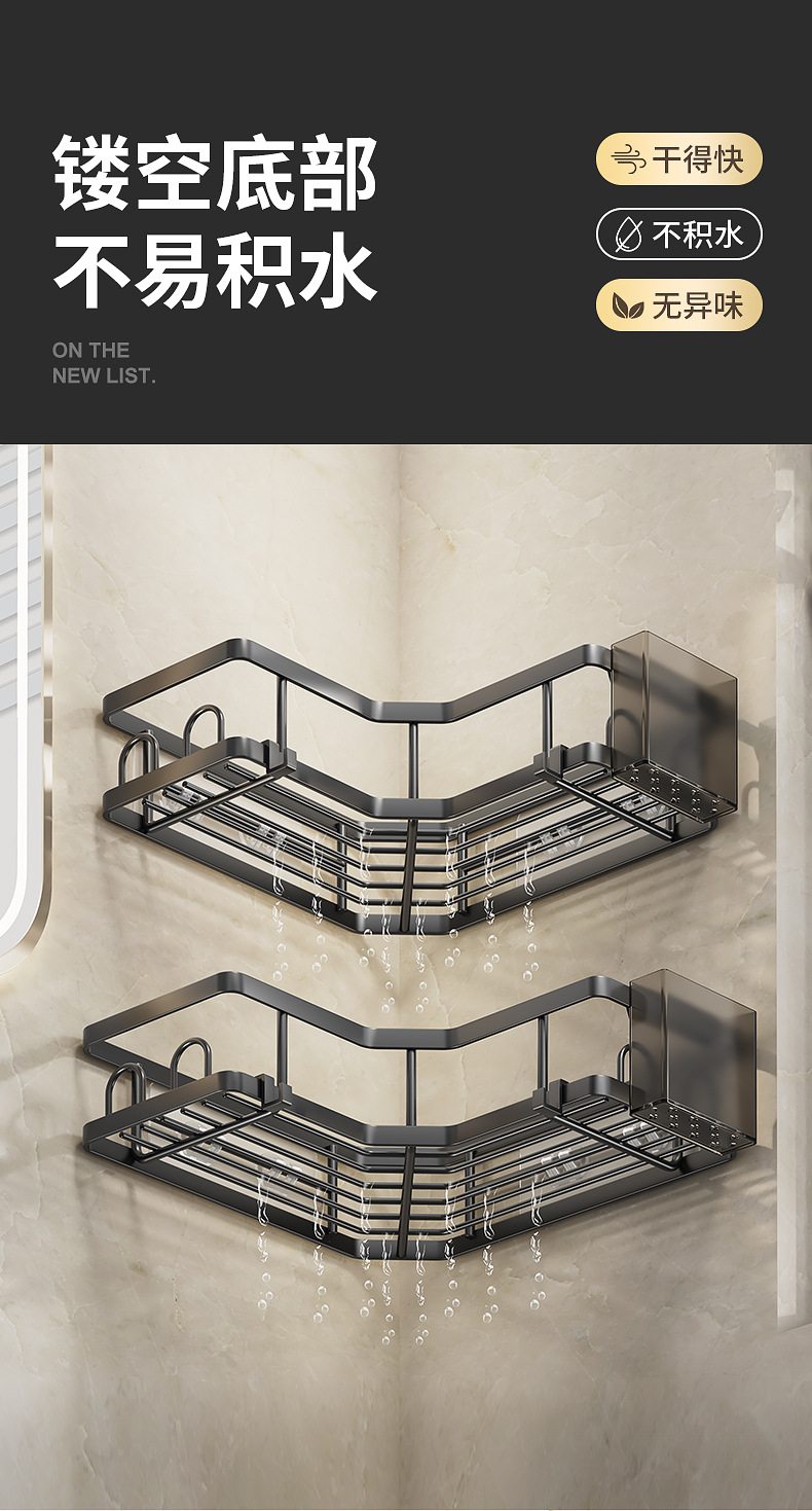 铁艺三角置物架浴室免打孔收纳架卫生间墙角壁挂铁艺整理架子跨境