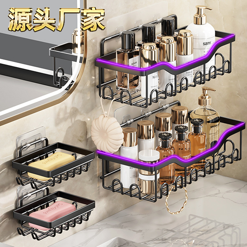 卫生间置物架铁艺免打孔厕所牙刷架洗手间肥皂盒浴室收纳架跨境