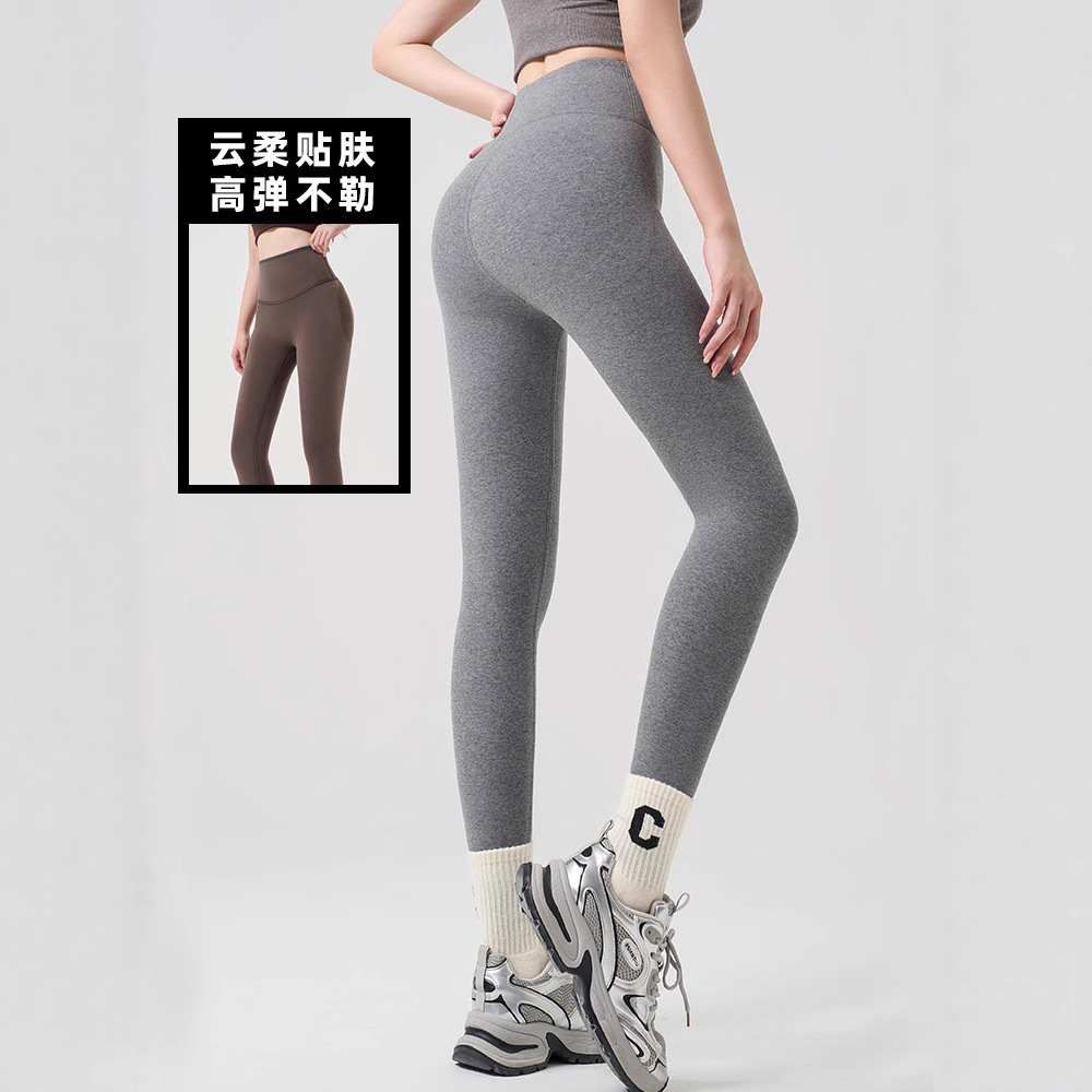 女性のアウターウェア用の縦糸プラスベルベットレギンス2024秋冬新作ハイウエストコットン弾性暖かいタイトヨガパンツ