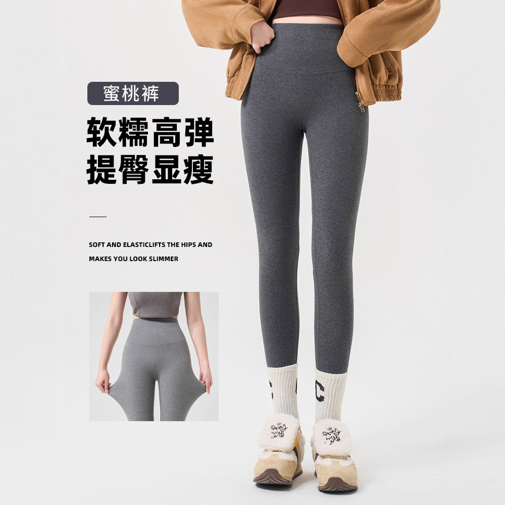 高腰加绒蜜桃裤女秋冬加厚保暖提臀显瘦外穿紧身弹力不臃肿休闲裤