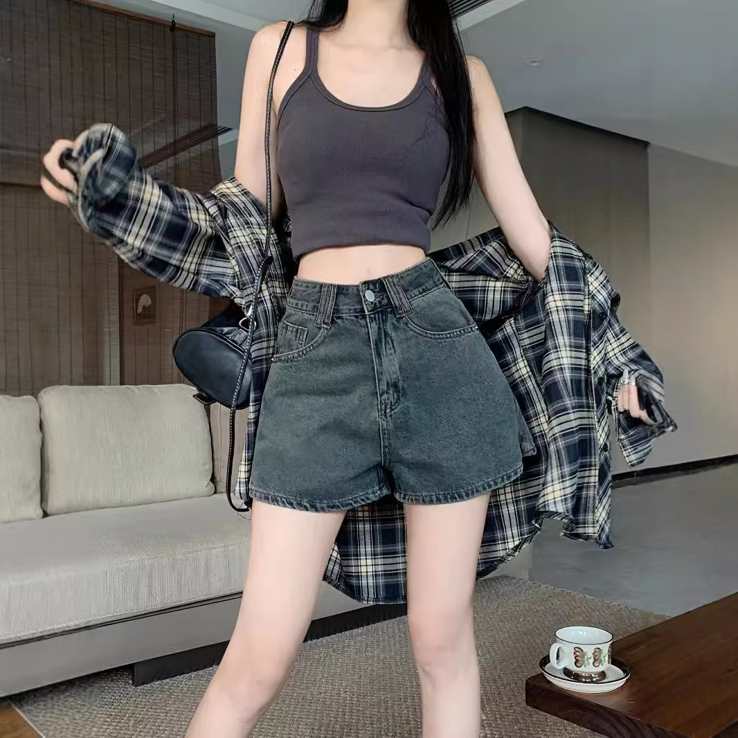 レディースジーンズ 夏 2025 新作 レトロ ハイウエスト Aライン ワイドパンツ 着回しやすい ストレート ホットパンツ ショートパンツ