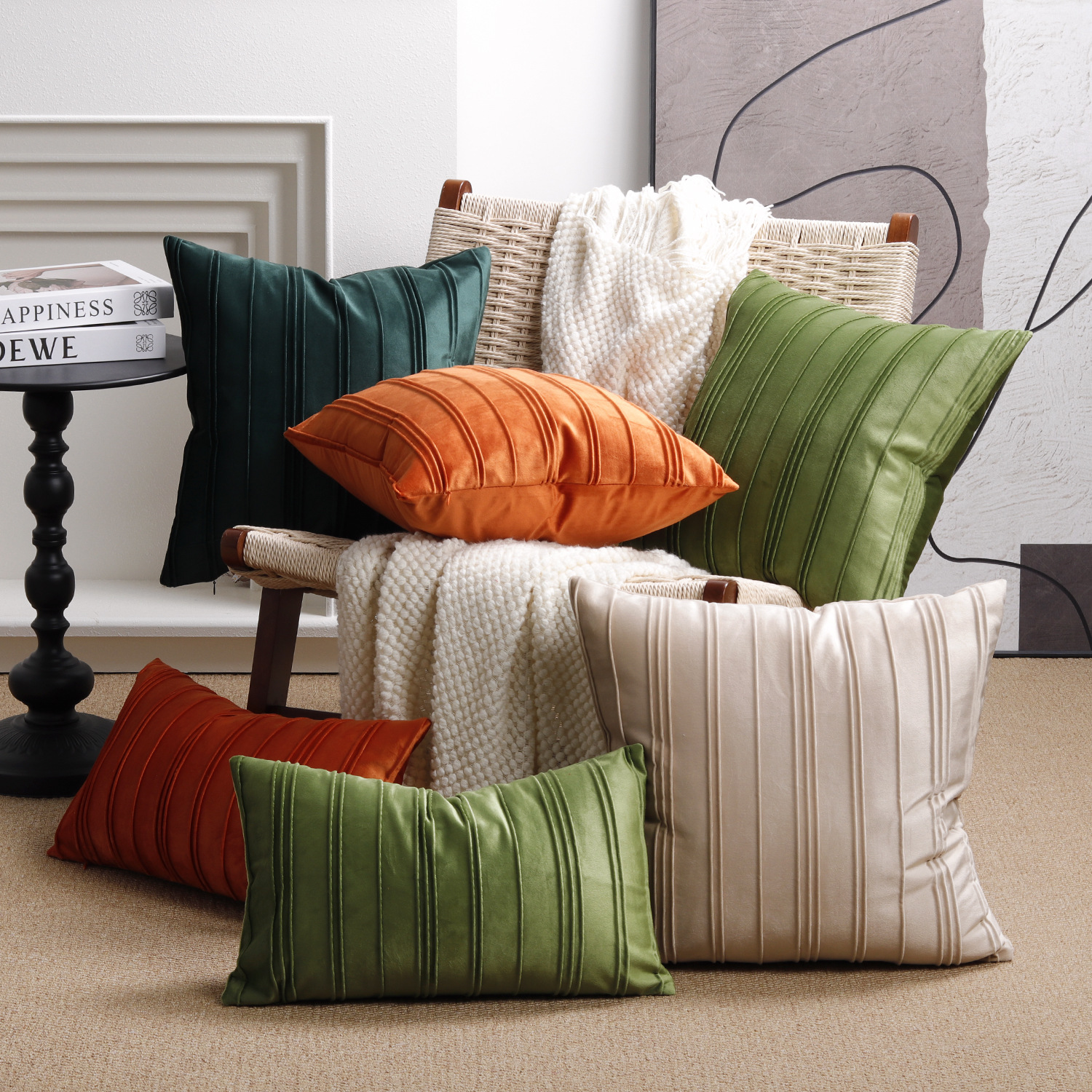 跨境批发天鹅绒抱枕套竖条纹现代简约风抱枕套ins潮品家用靠枕套