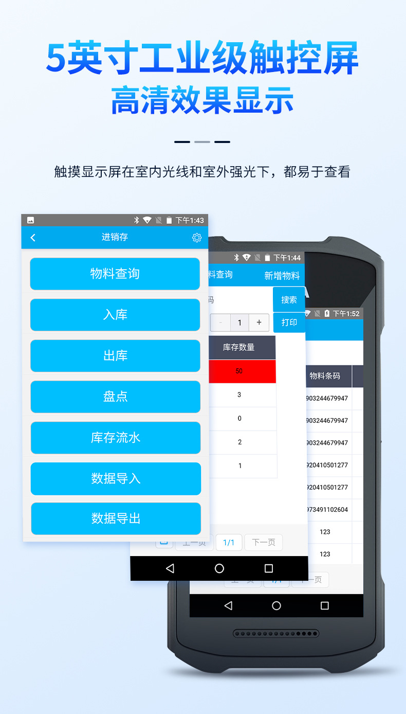 優博訊dt50 xスマート端末全画面安卓pda倉庫販売棚卸機ハンディデータ収集器