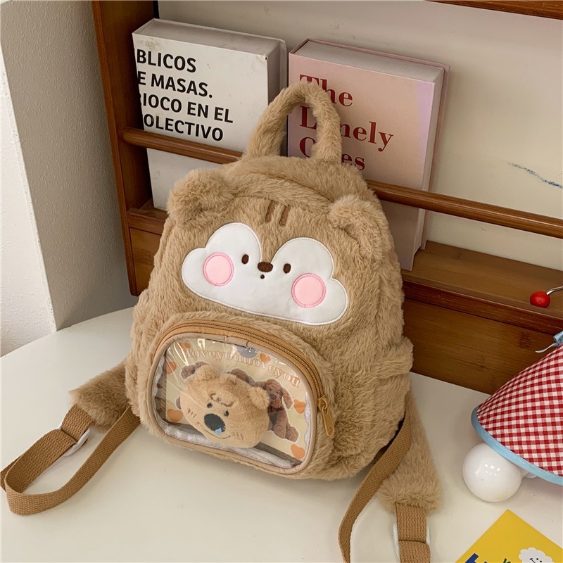 2025新款可爱卡通双肩包毛绒少女背包大容量毛茸茸学生包痛包