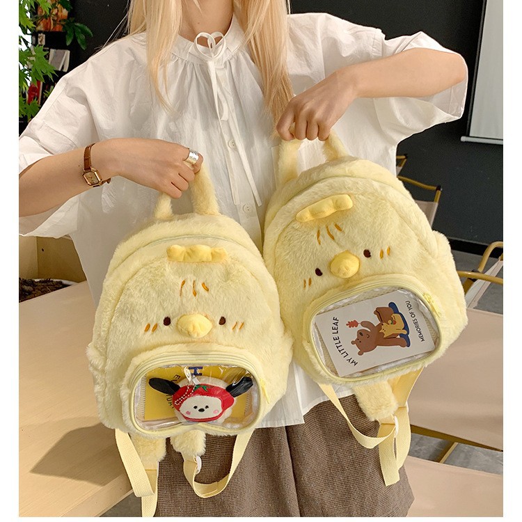 2025新款毛茸茸双肩奶黄小鸡痛包双肩包个性可爱少女心小背包