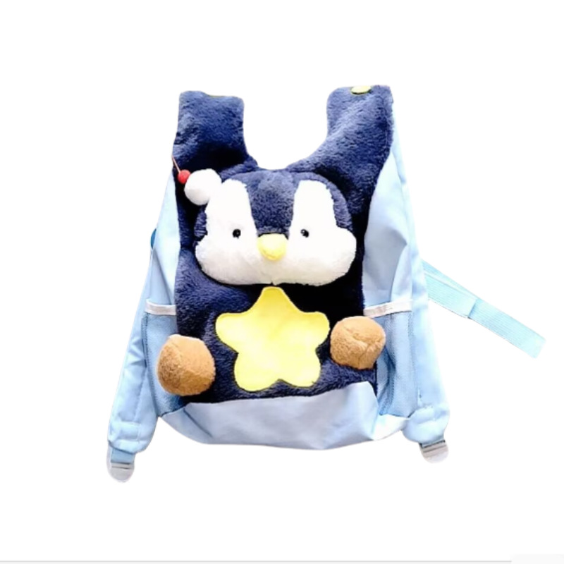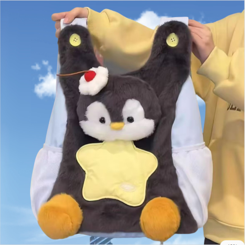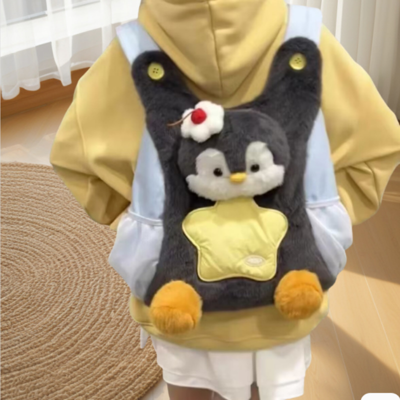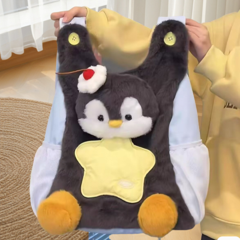 卡通ins呆萌企鹅双肩包女可爱毛绒小狗学生书包休闲童趣通勤背包