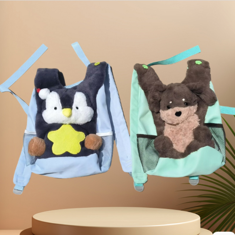 跨境2025新款可爱呆萌学生书包小狗卡通包小企鹅毛绒背包女双肩包