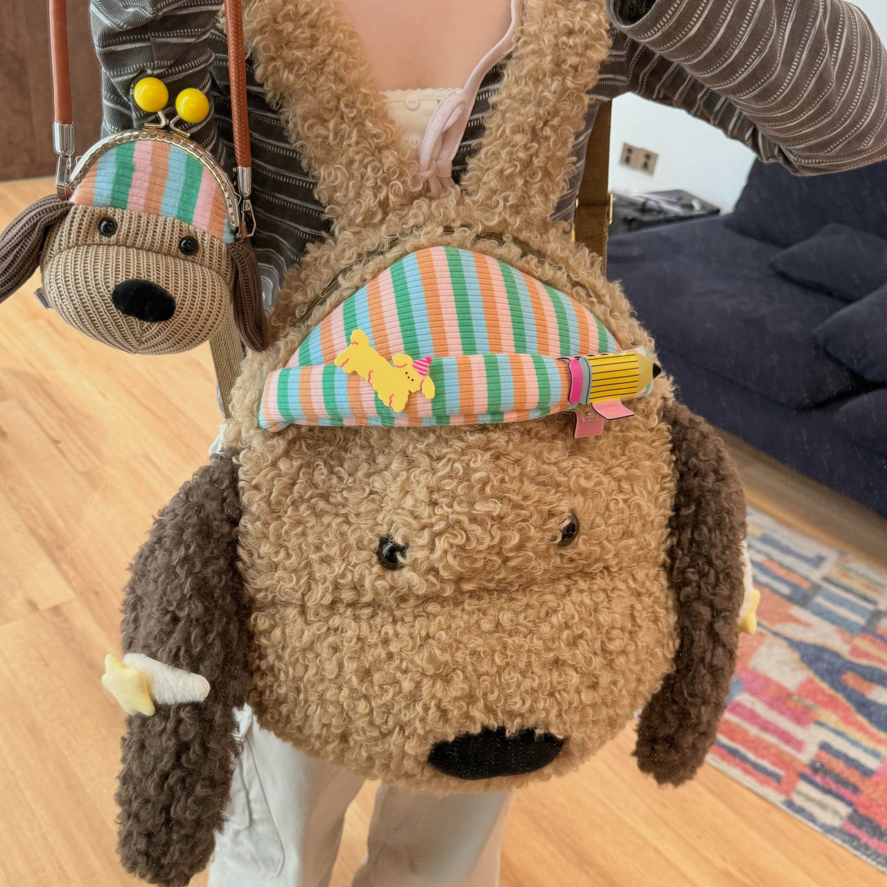 韩版ins可爱毛绒小狗双肩包女小众设计卡通学生书包时尚百搭背包