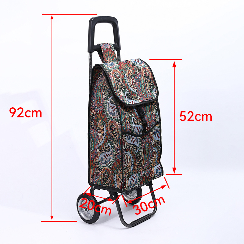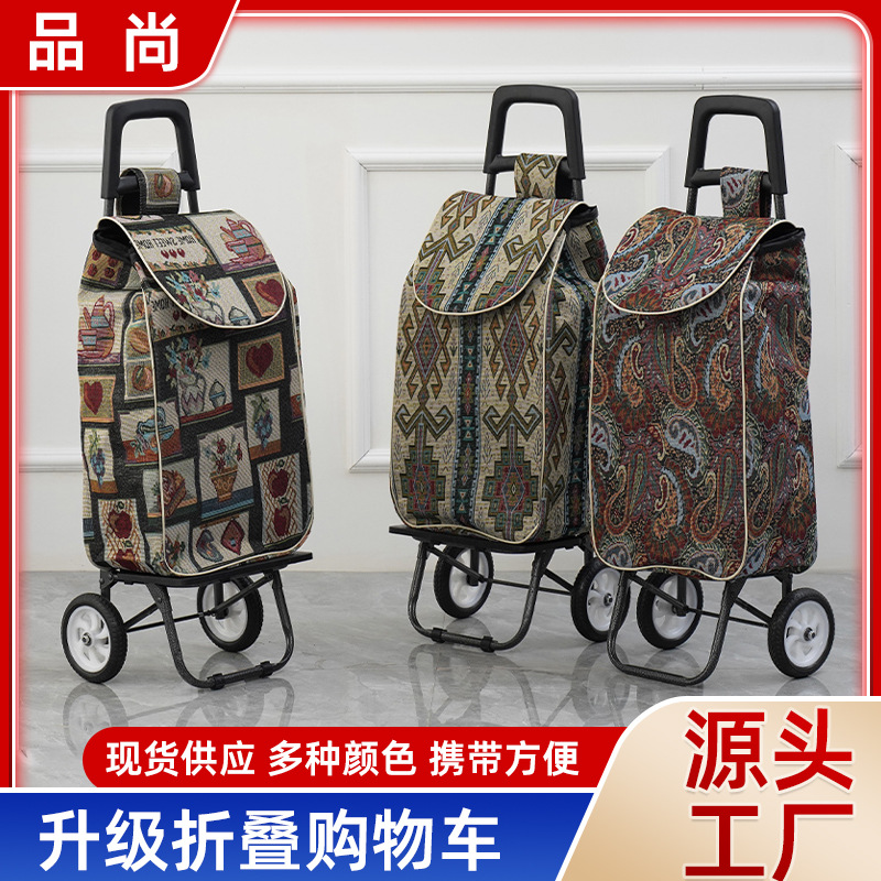 厳選された民族風プリントのショッピングカート、折りたたみ式ハンドル付き、家庭用、高齢者向け、野菜市場用小型カート