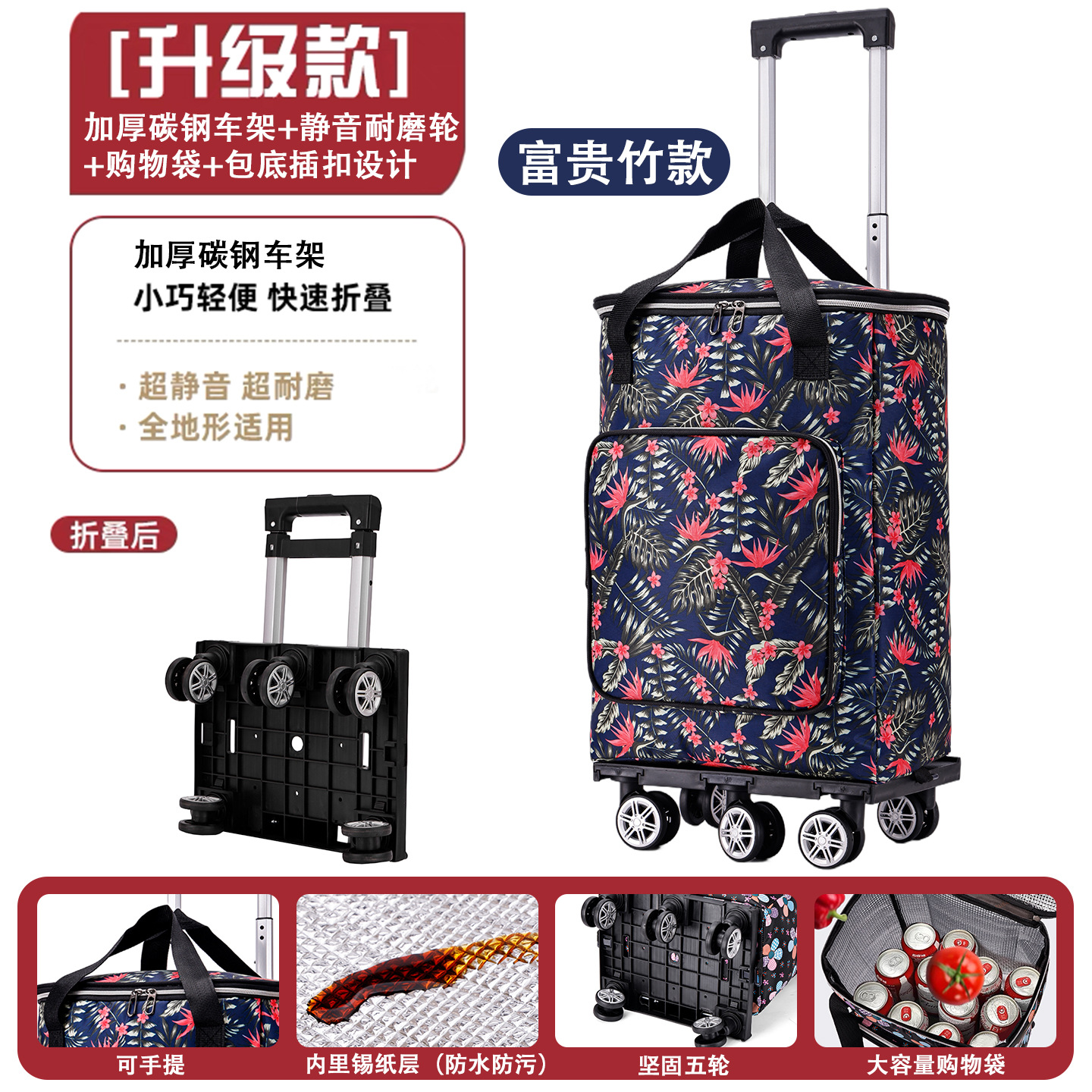 老年人买菜车可折叠拉杆车菜市场便携手拉车大轮子印花拉杆小拖车