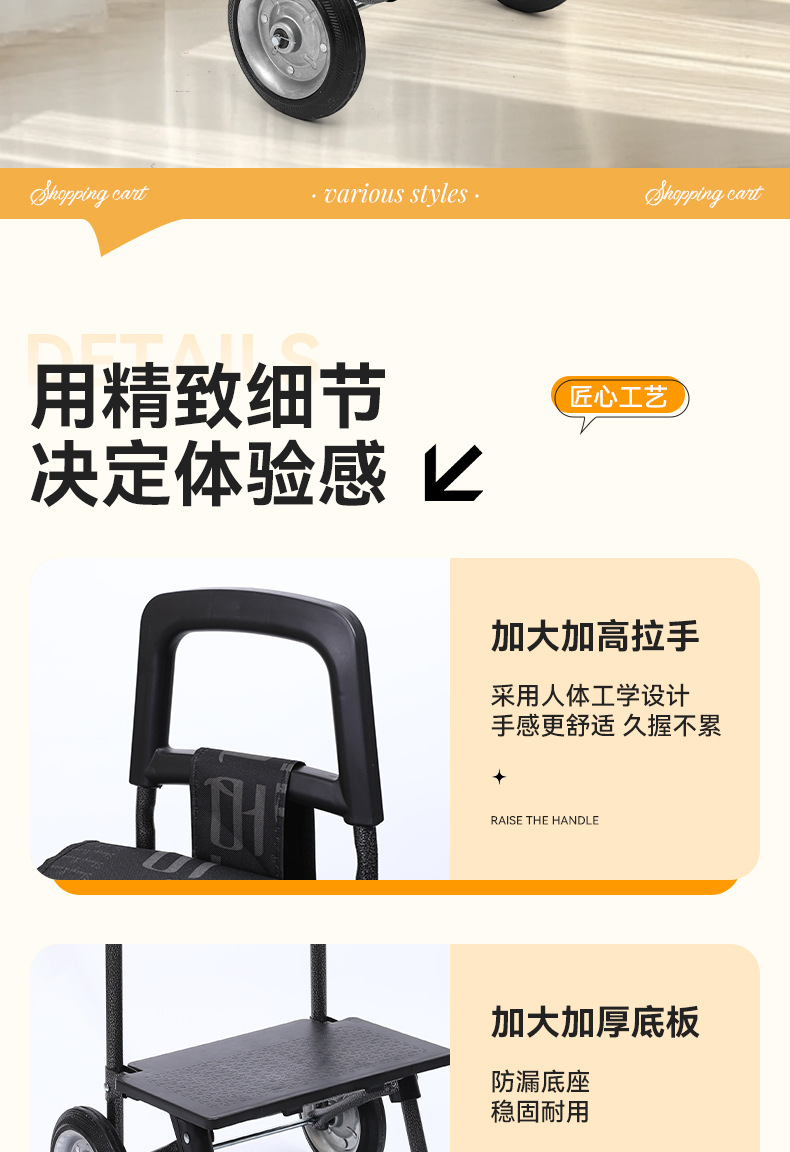 スーパーの屋外折り畳み手引きショッピングカート家庭用高齢者便利なトロリー大容量荷物手引きトレーラー