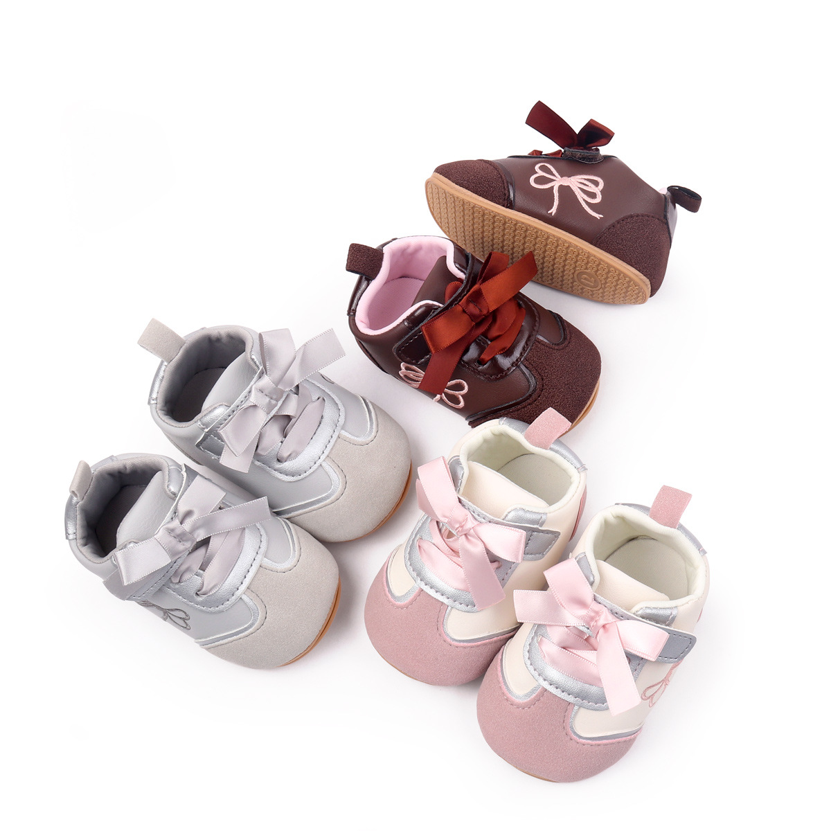 男女宝宝春秋运动鞋蝴蝶结胶底防滑学步鞋时尚婴儿鞋0-1岁休闲鞋