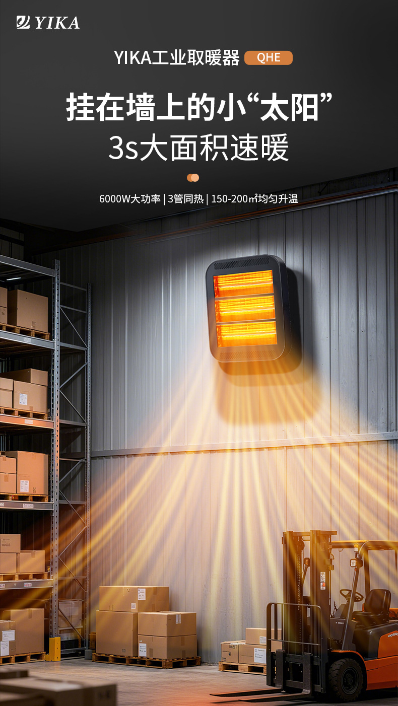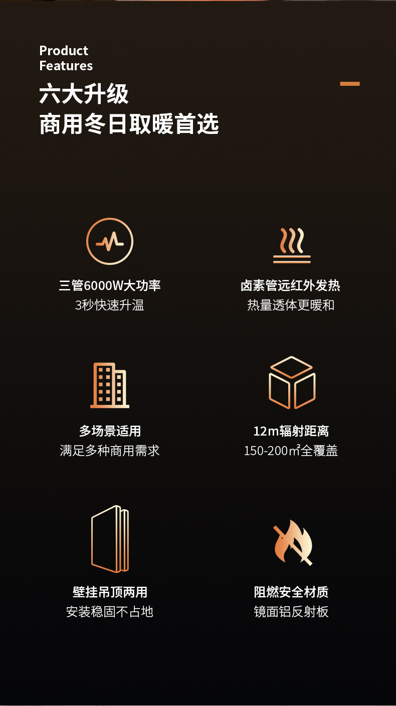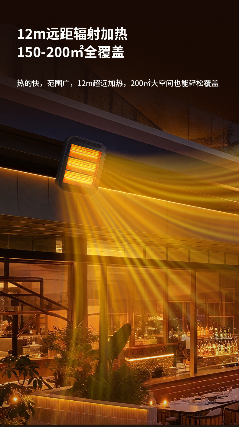 户外商用壁挂辐射取暖器工业红外电暖气卤素管发热防水吊顶大功率