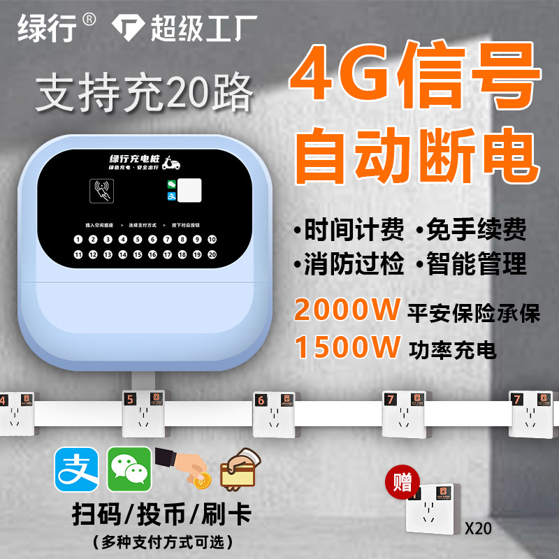 Green Line 20 ウェイ バッテリー チャージング ステーション スマート スキャン コード コミュニティ プロパティ カード スワイプ コイン式屋外電気自動車充電ステーション