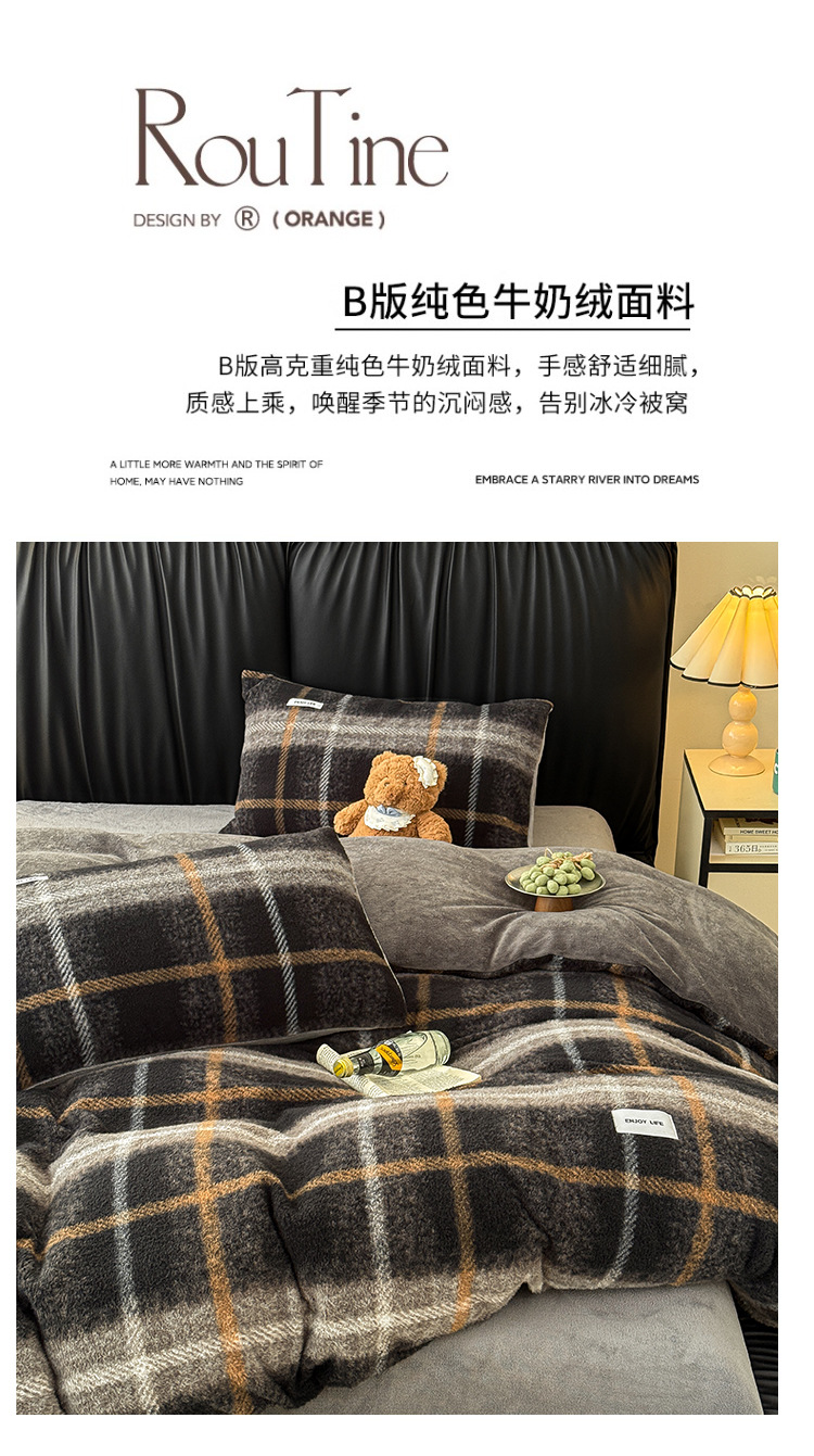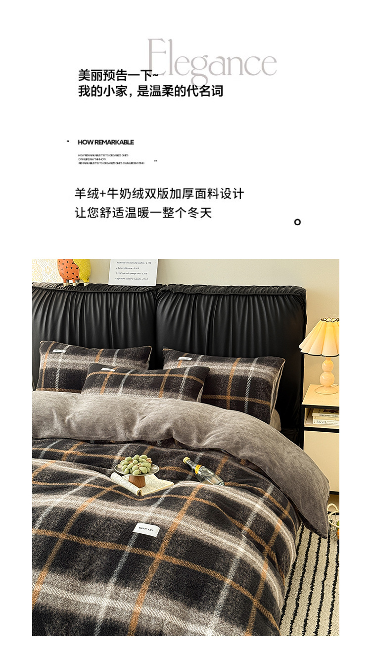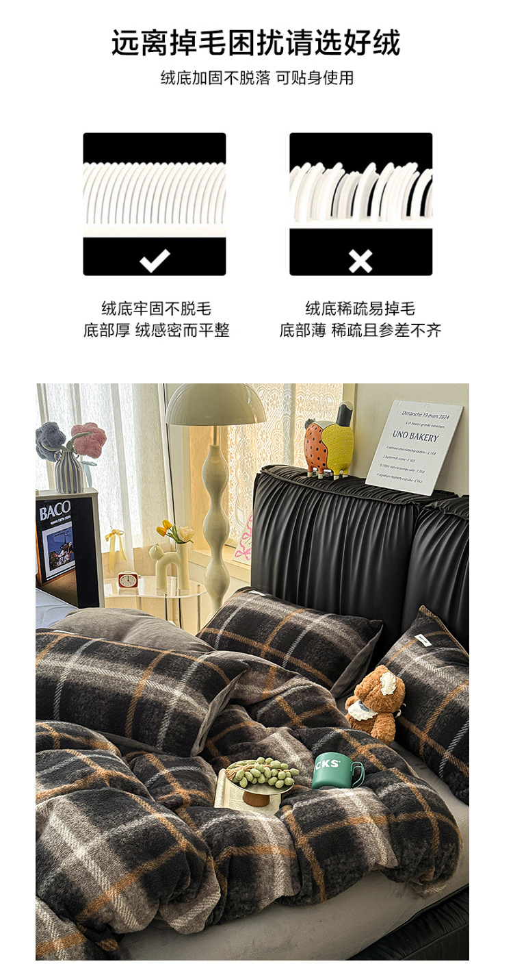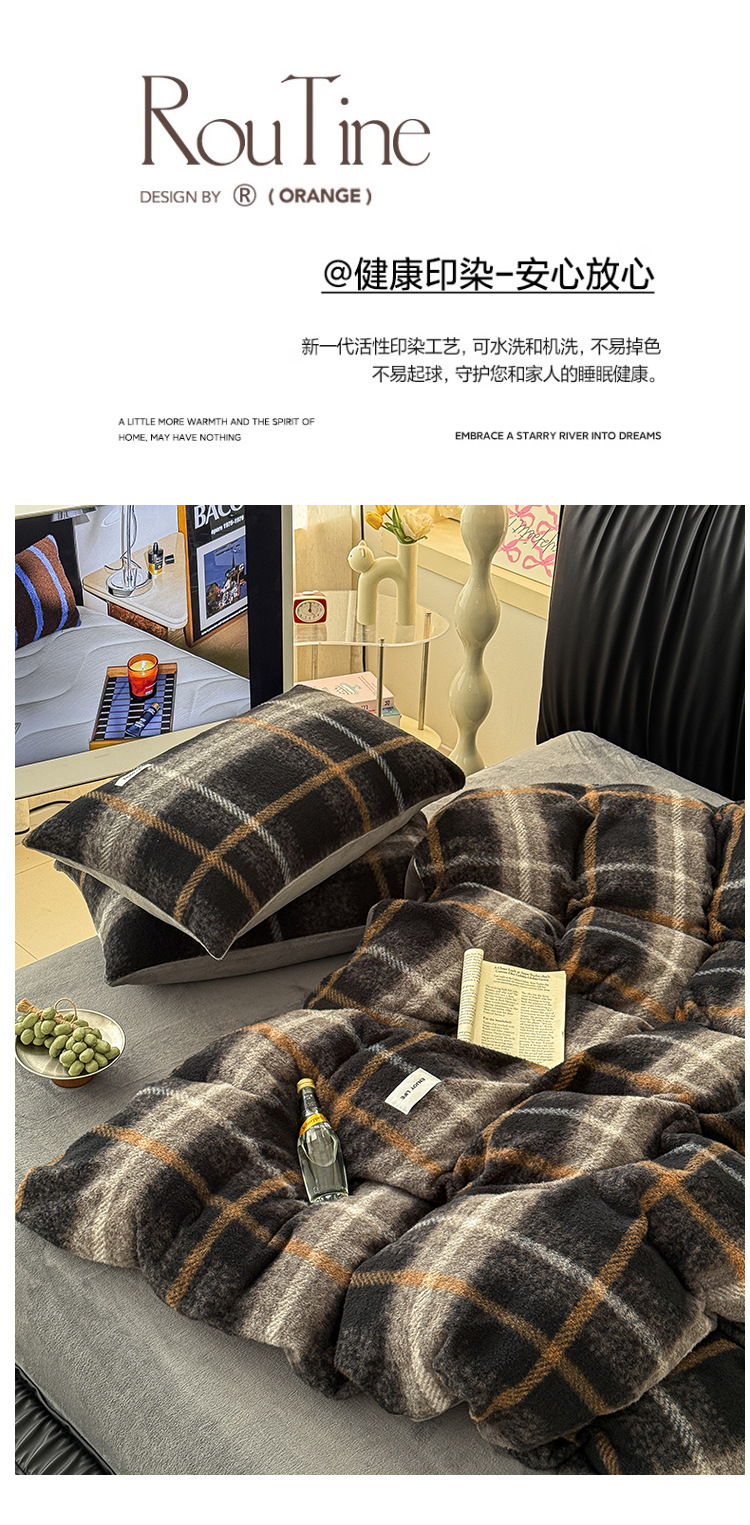 ins简约格子仿羊绒床上四件套加厚保暖轻奢高级感牛奶绒床品被套