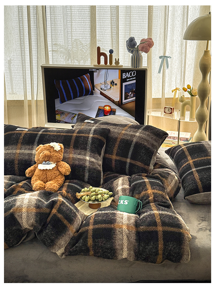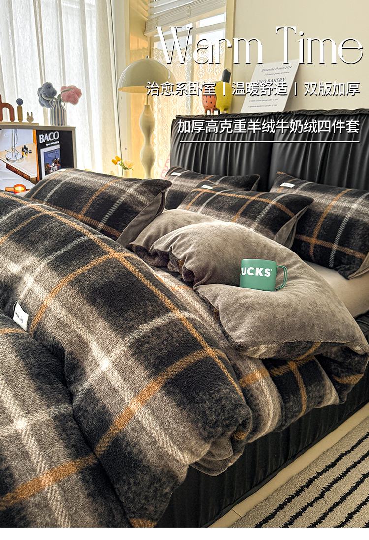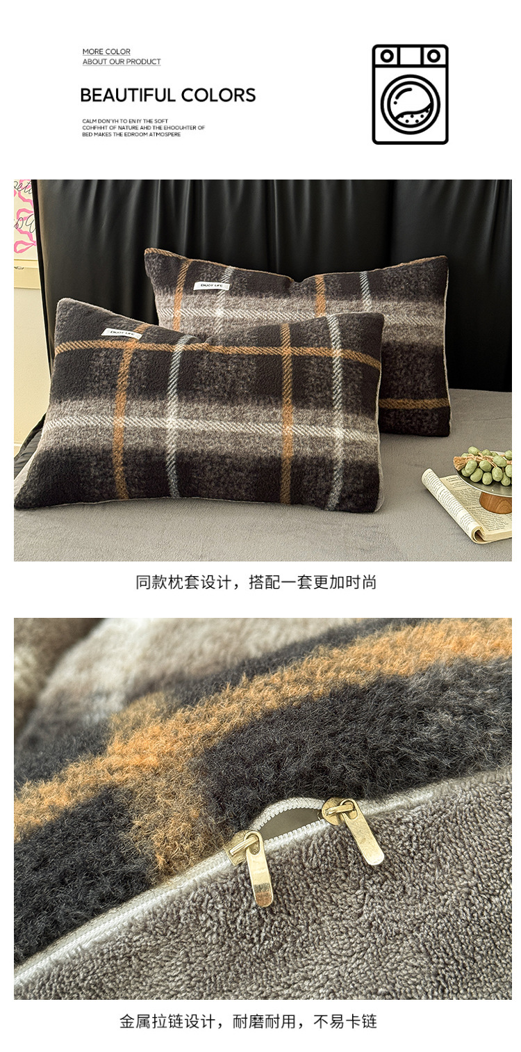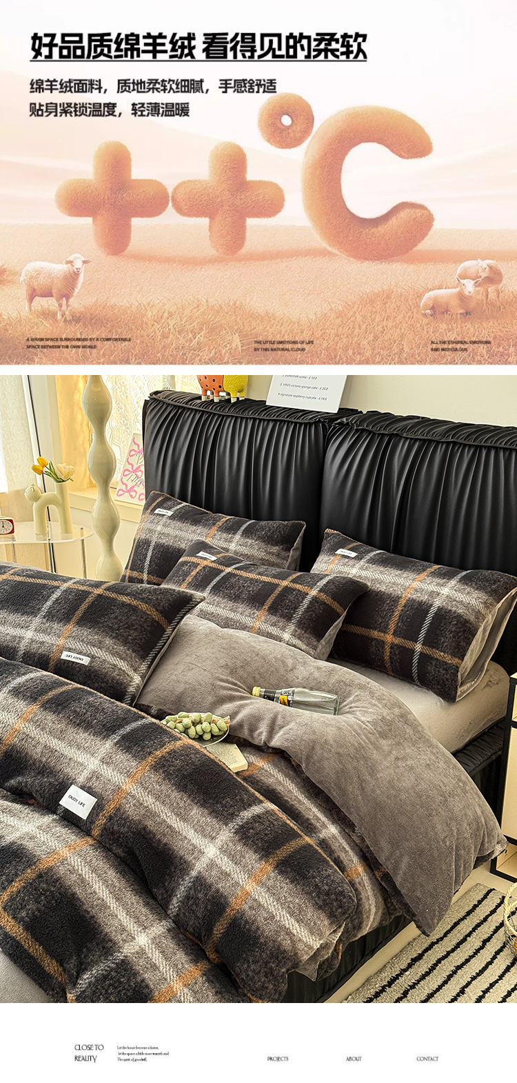 ins简约格子仿羊绒床上四件套加厚保暖轻奢高级感牛奶绒床品被套