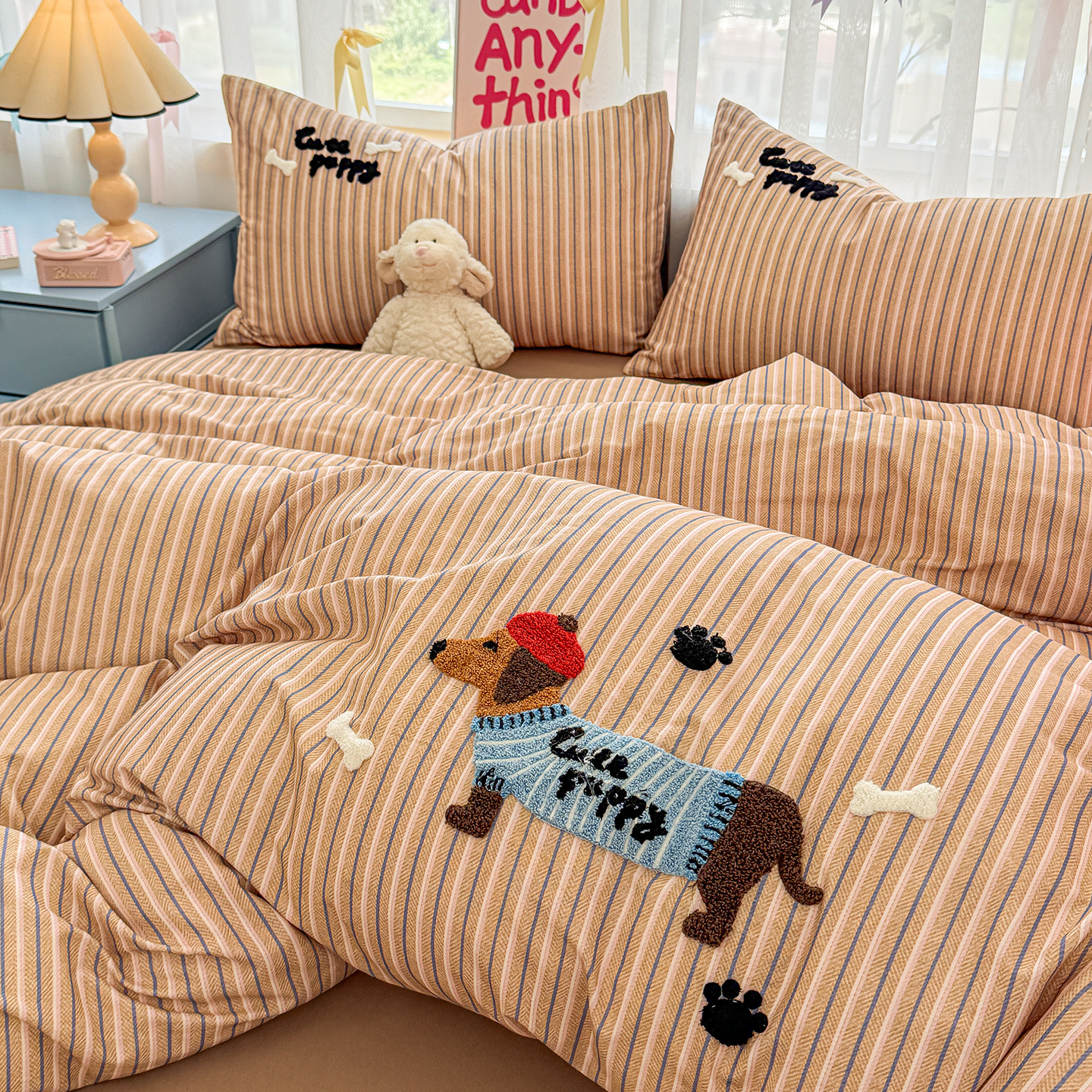 腊肠狗全棉床上四件套A类纯棉加厚磨毛秋冬季卡通床品被套床单笠