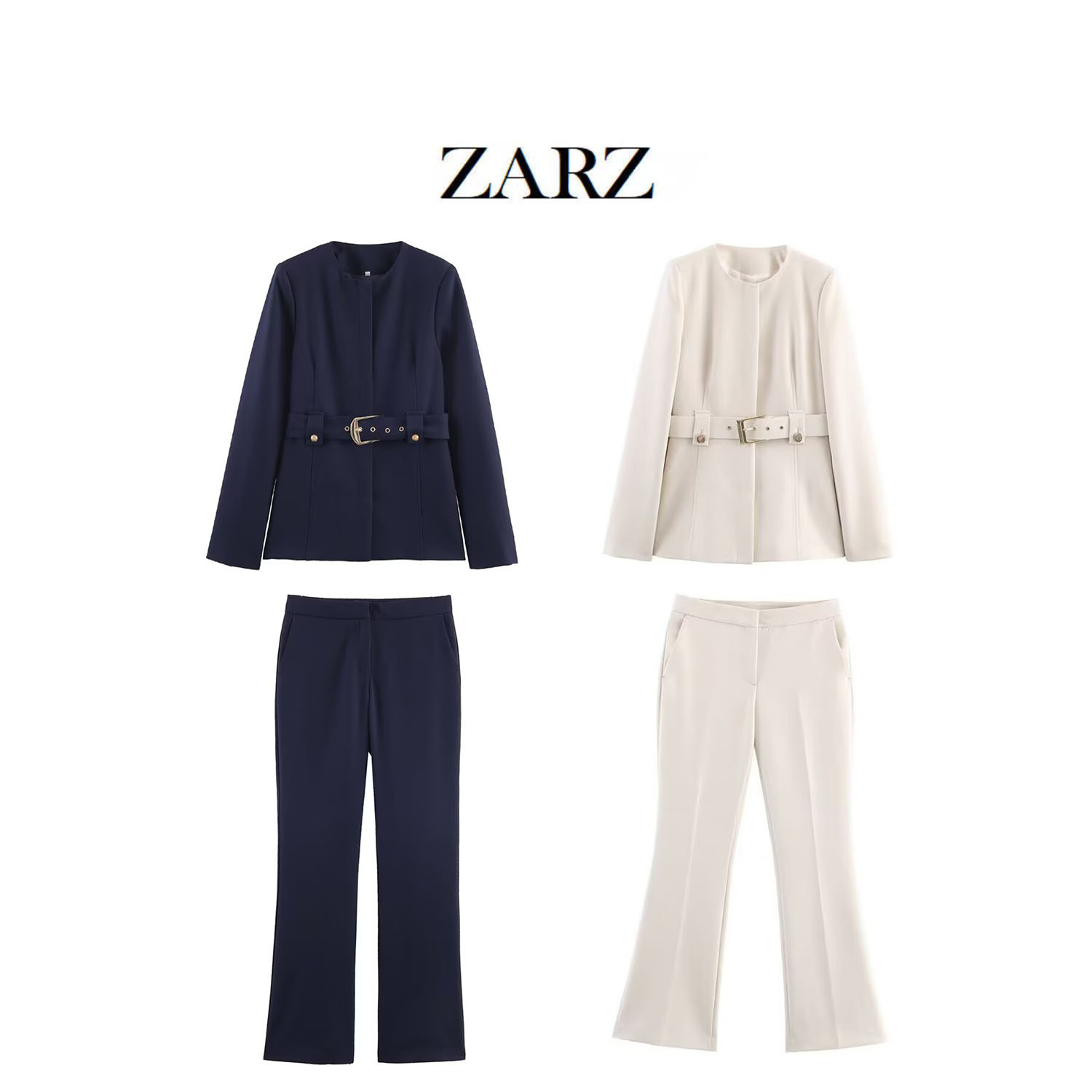 ZARZ 自制 欧美风 新款女装 洋气 时髦修身腰带西装外套 喇叭裤